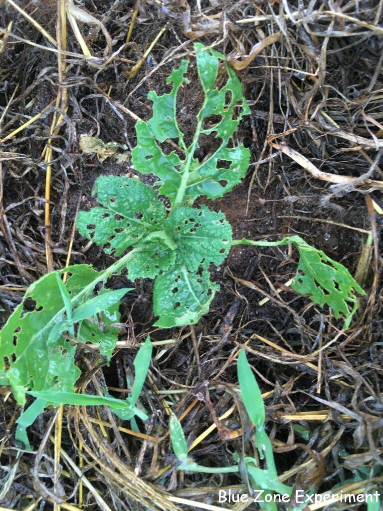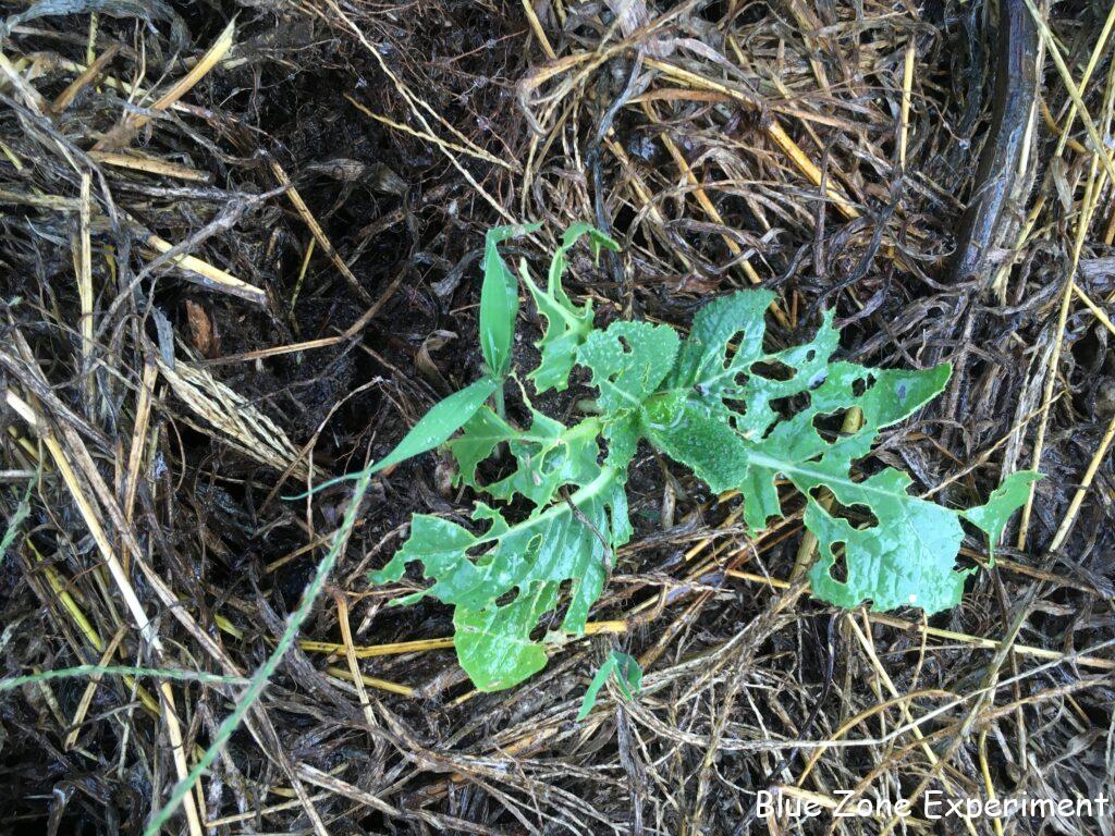 白菜はすっかりボロボロです。丸坊主になったものもあります。すっかり丸坊主になれば、虫もいなくなるので、もしかしたら復活するかもしれないと、むしろひそかに期待しています。それにしても、ダイコンサルハムシにとって、白菜はよっぽどおいしいのでしょうね。ハクサイサルハムシと改名すべきかもしれません。