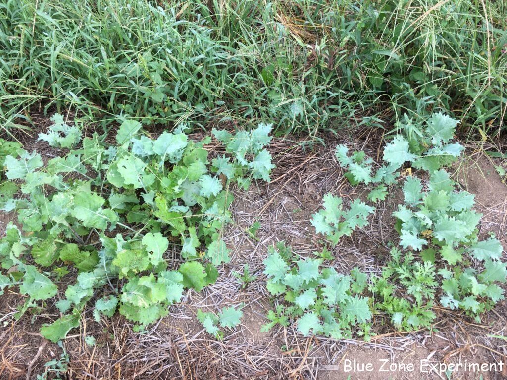 ケールも少し間引きが必要です。ここにも少し虫がついてきましたが、他のアブラナ科と比べるとずいぶんきれいです。間引いた苗は、インゲンの根元に移植してみました。根っこを傷めていると思うのでうまく根付くかどうかは疑問ですが、一つでも活着したらいいという程度の気持ちで植えてみました。初心者にありがちなことだと思いますが、間引いた苗を捨ててしまうというのは、もったいなくてなかなかできないのです。