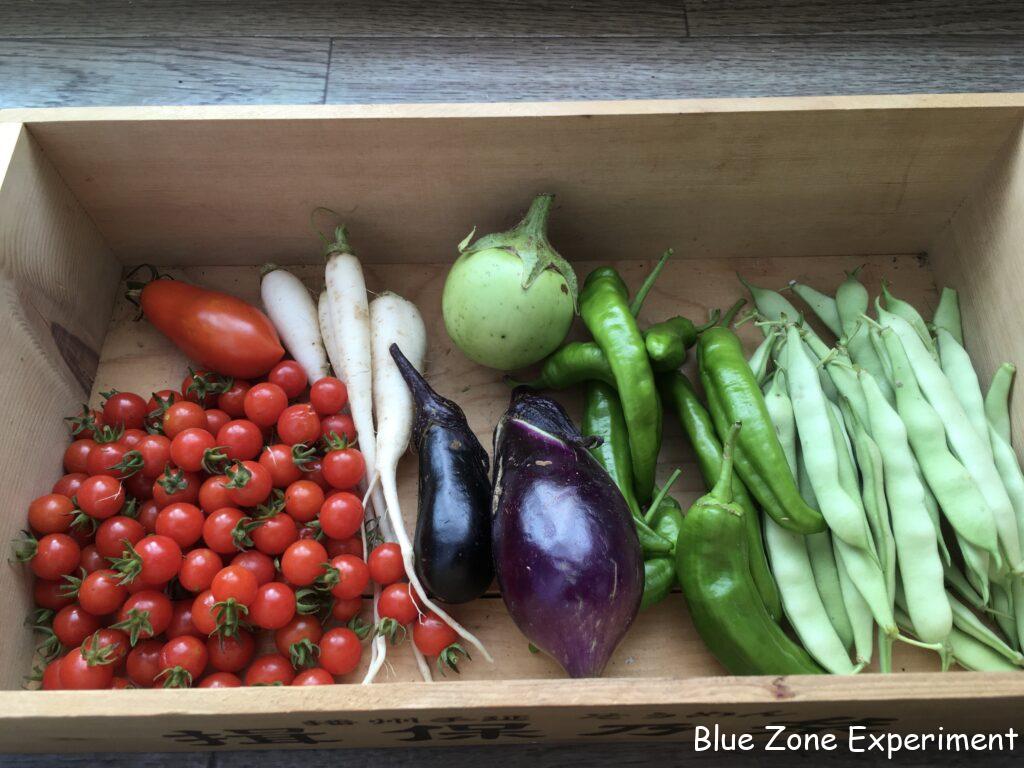夏野菜の勢いが一気に衰えてきました。時期的なことはもちろんなのですが、雨が降らないせいか、去年より早く終わってしまう感じです。今日の収獲は、マッツワイルドチェリートマト、種取り用のサンマルツァーノ、間引き大根、ナス、アップルグリーンナス、伏見甘長トウガラシ、万願寺とうがらし、さやインゲンです。収穫がさみしくなってきましたが、来月には、お楽しみの落花生とサツマイモが待っています! ケールやレタスなどの葉物も待ち遠しいです。