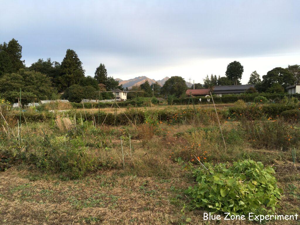 芋を掘ったあとの畝は、土が裸にならないように、芋のツルと草をかけておきました。