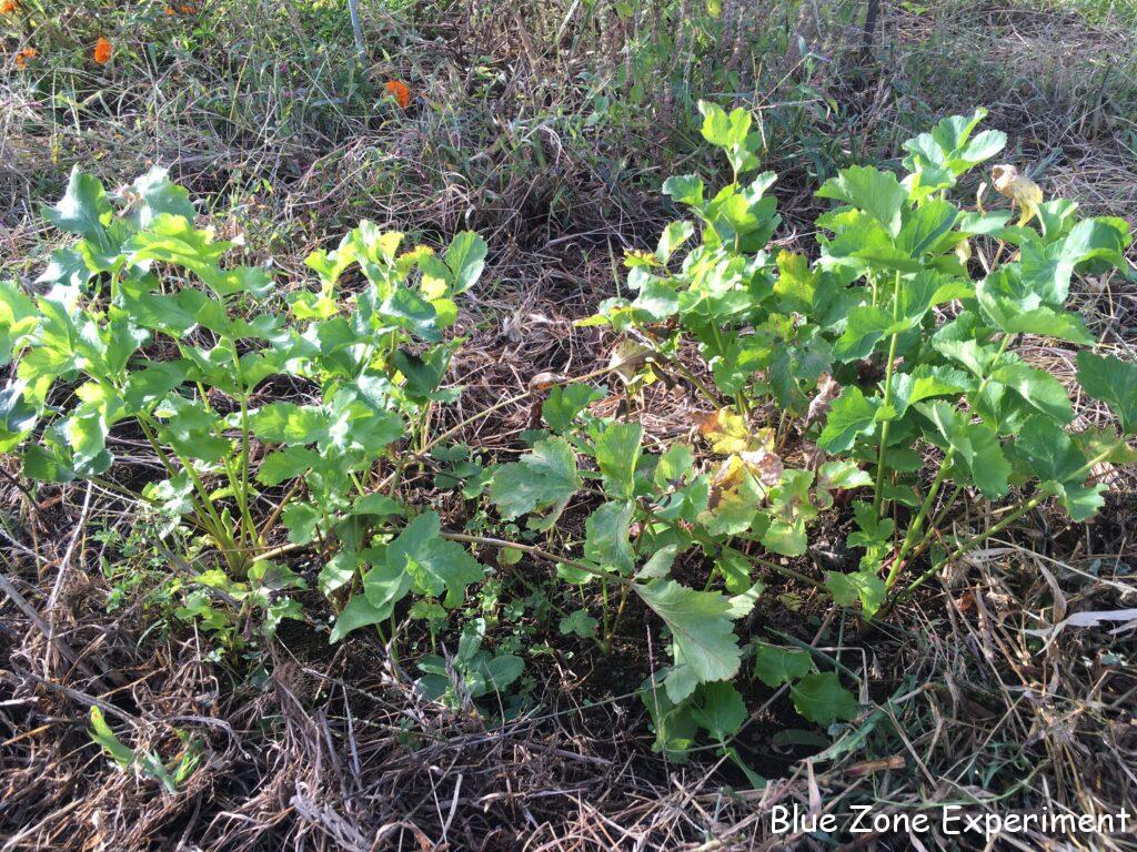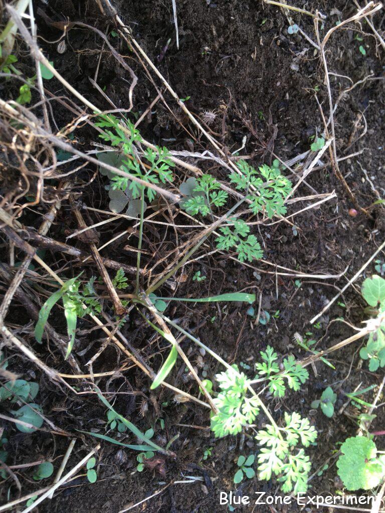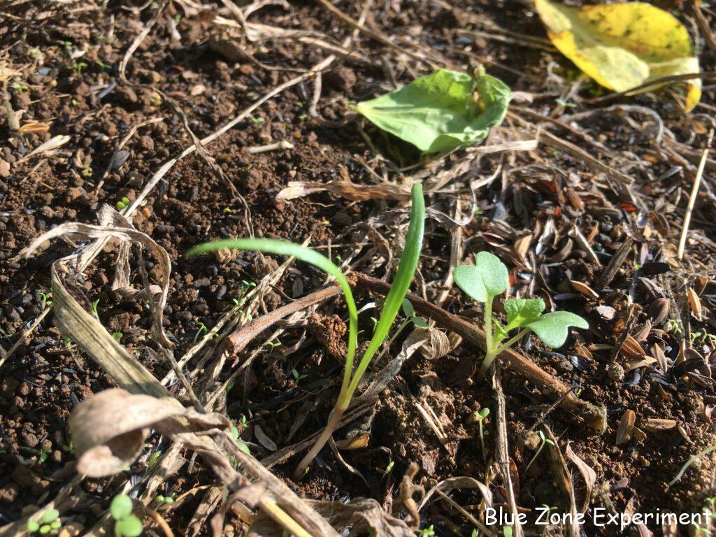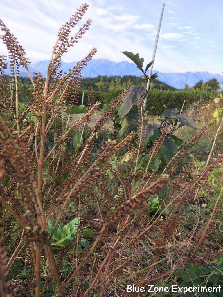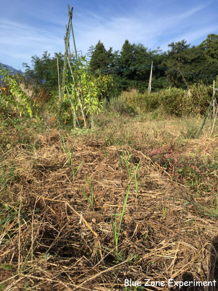 パースニップは、元気そうです。もうキアゲハの幼虫はいません。同じ畝のイタリアンパセリもしっかり根付いて色もよくなってきました。9 月 17 日に植え付けた自家採種のニンニクは順調です。ただし、畝の端の方に草をたくさんかぶせすぎていたようで、芽が出られないでいたので、少し薄くしておきました。同じ日に植え付けた購入種ニンニク「ホワイト六片」はまだ発芽しません。もう一か所の畑でも発芽していません。寒冷地向きの品種なので、今年は暑すぎて発芽が遅れているのでしょうか? 青ジソは、種が茶色くなってきたので、来年の種用に少しとりました。こぼれ種で十分なのかもしれませんが。ほうれん草は、ほんの少しだけ発芽しています。