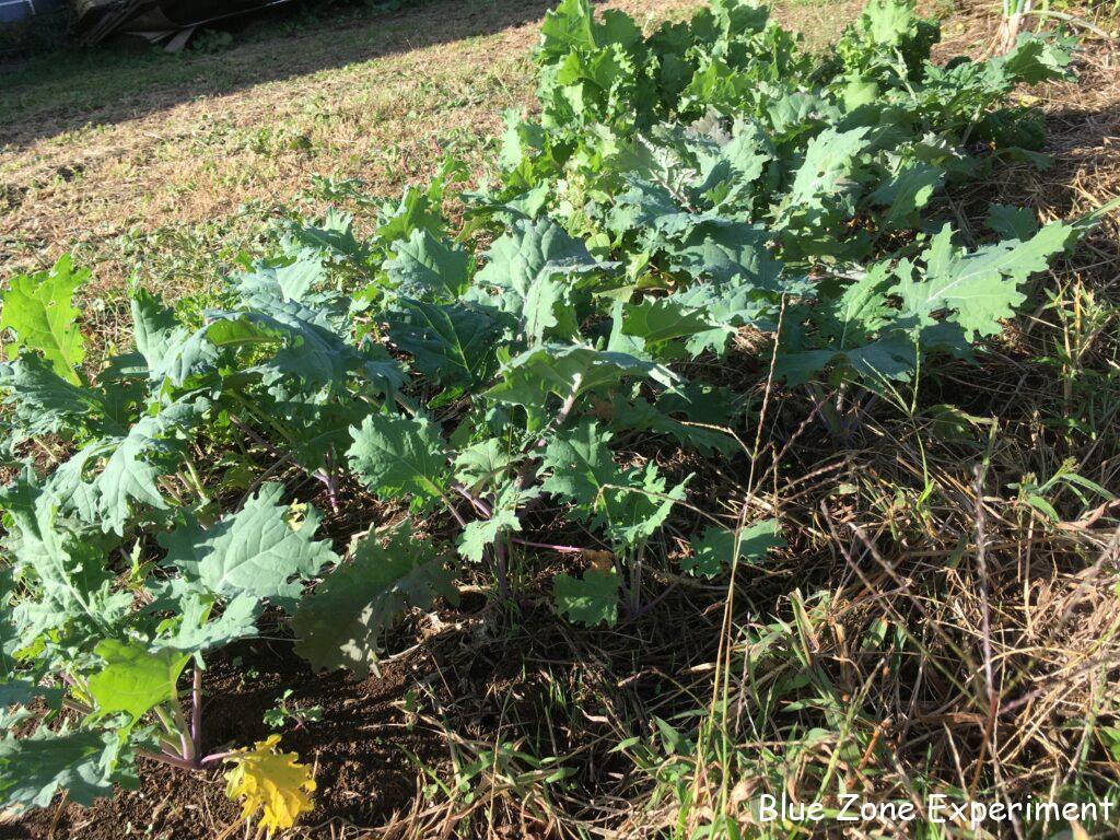 同じ畝の芽キャベツは、一週間ほど見ないうちに、ずいぶん成長しました。