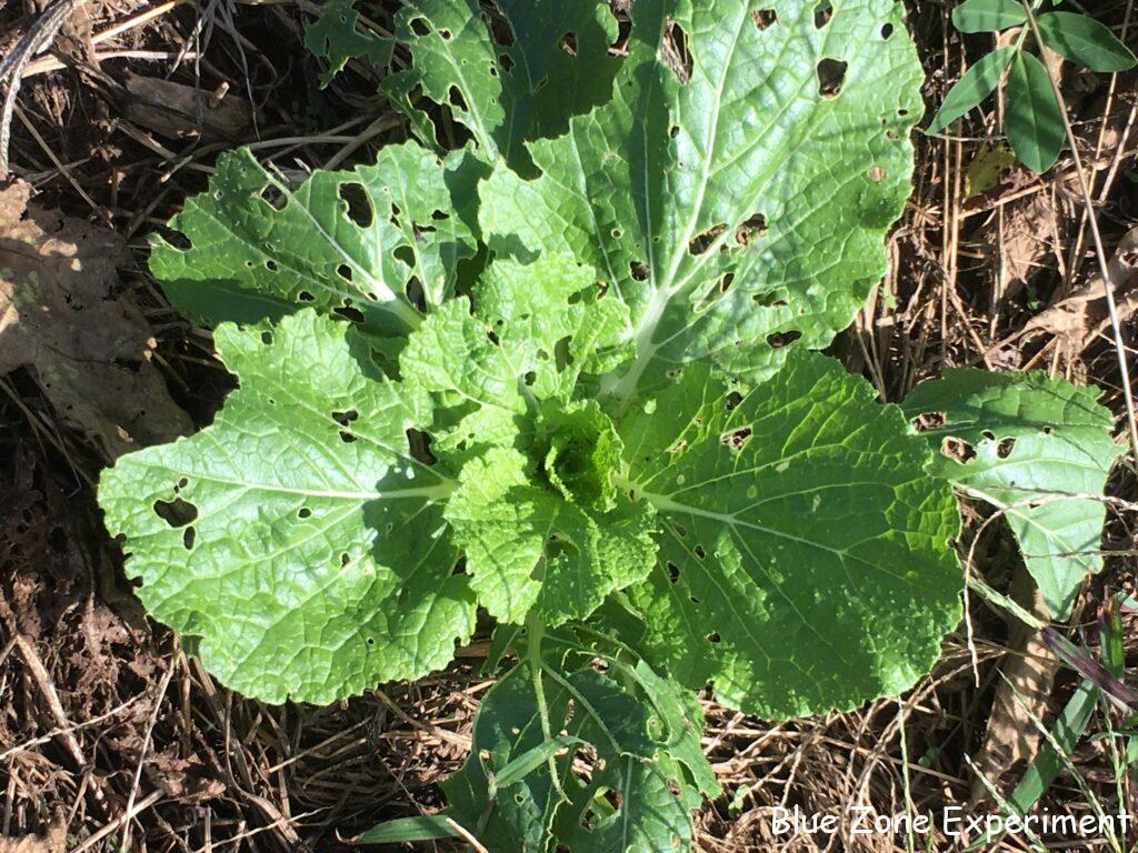 白菜には、まだたくさんのダイコンサルハムシがついています。それでも、ほんの少しずつ成長しているようです。丸坊主にされていた株は、一旦復活するかに見えたのですが、今日見てみると、芯の部分を食べられているのでもう駄目だと思われます。