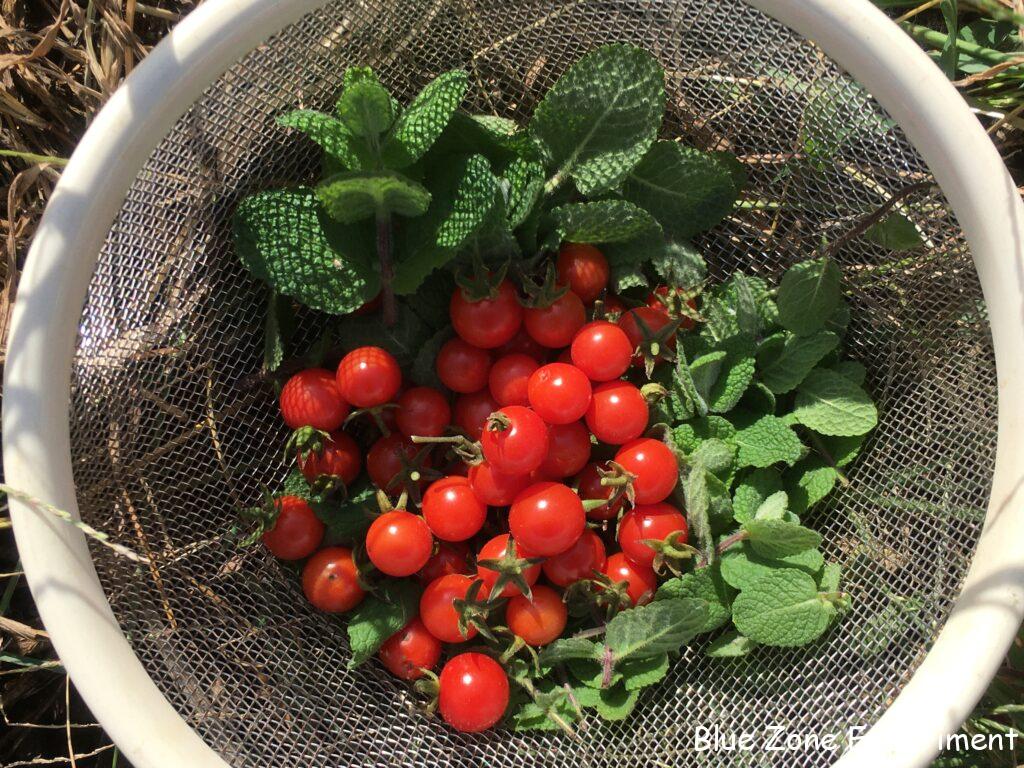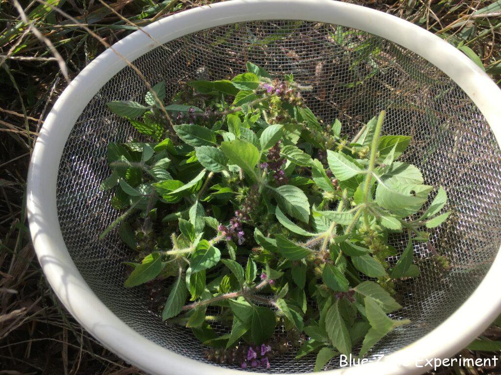 今日の収穫物は、サツマイモ以外には、ケール、パレルモ、ピーマン、伏見甘長トウガラシ、マッツワイルドチェリートマト、アップルミント、ホーリーバジル。アップルミントとホーリーバジルは、ハーブティー用なので、今ベランダで干しています。ホーリーバジルは、食べるのはあまり好きではないのですが、バニラにも似た香りが何とも素晴らしいです。葉の部分だけでなく穂の部分もお茶にできるようですが、穂はほとんど種を付けているので、新鮮そうな所を選んで収穫しました。