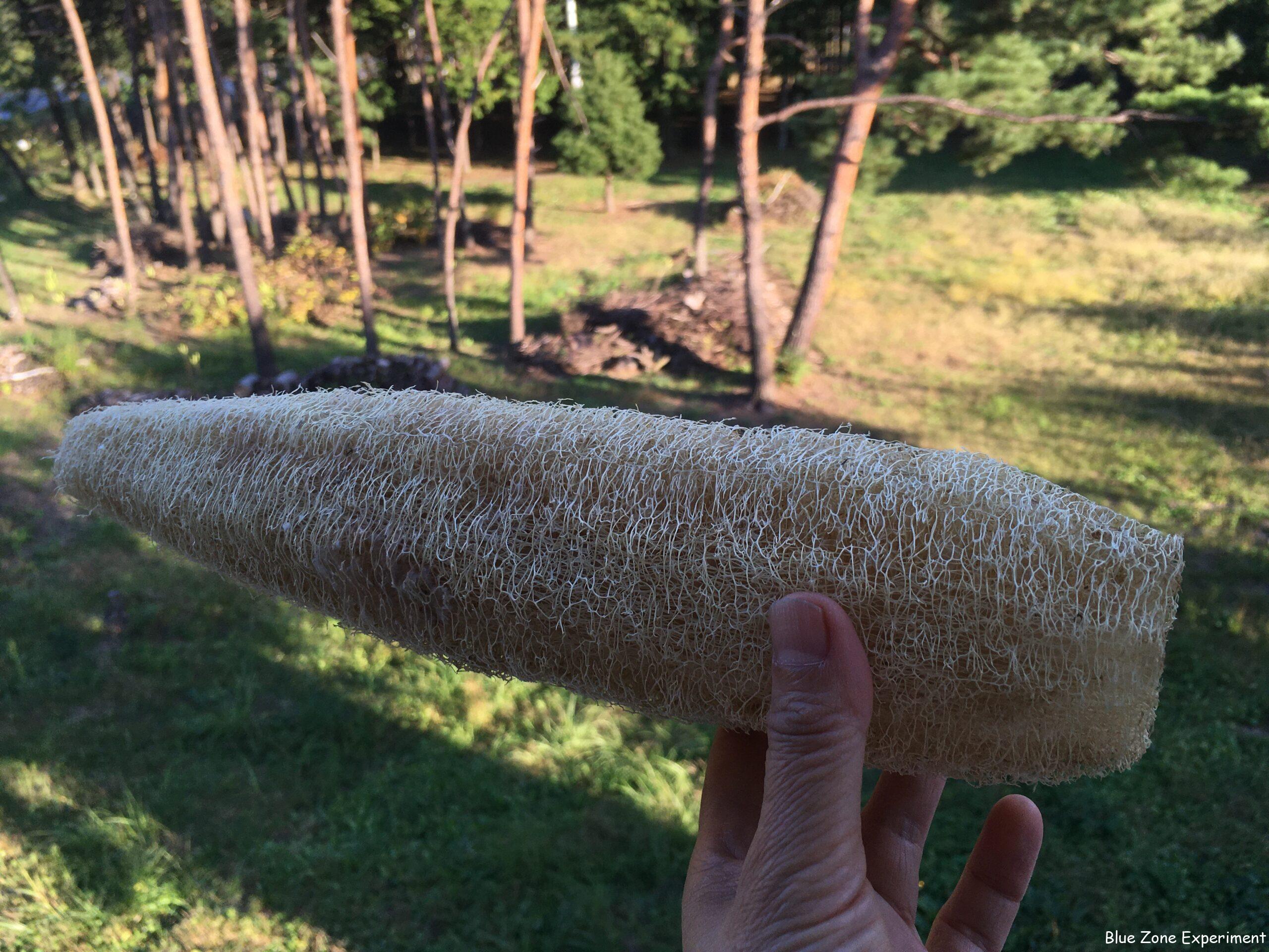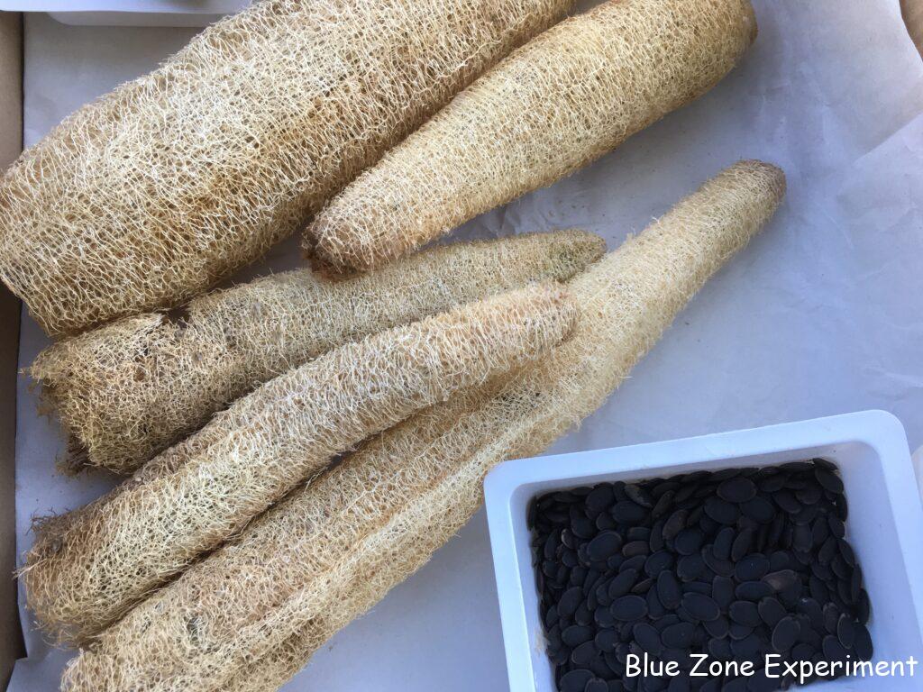 ヘチマの実がなったら、そのまま乾燥するまでぶら下げたままにしておきました。その過程で、いくつか腐ってしまい、腐らなかったものも雨に当たってカビが出ているので、最良の方法ではないのかもしれません。青いまま収穫して外で乾かす方法や、青いものを煮て皮をむく方法もあるようです。