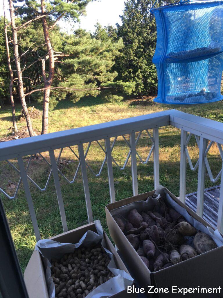 種取り用においていたダビデの星というオクラも茶色くなってきたので持って帰ってベランダに干しています。今はベランダは干すものが多くて賑やかです。落花生、サツマイモ二箱、種各種、干し芋など。干し芋はネットに入れて吊り下げて干していますが、気軽に取れるので、ついついつまみ食いしてしまい、あまり干さないうちになくなってしまいます。