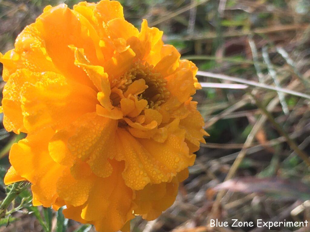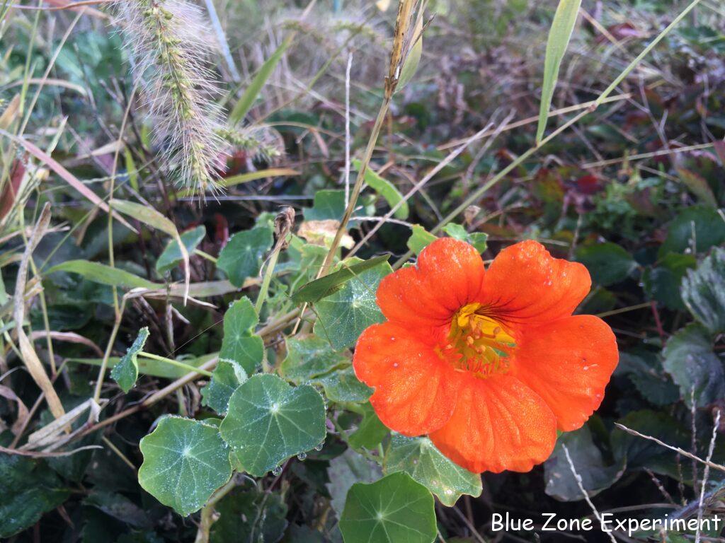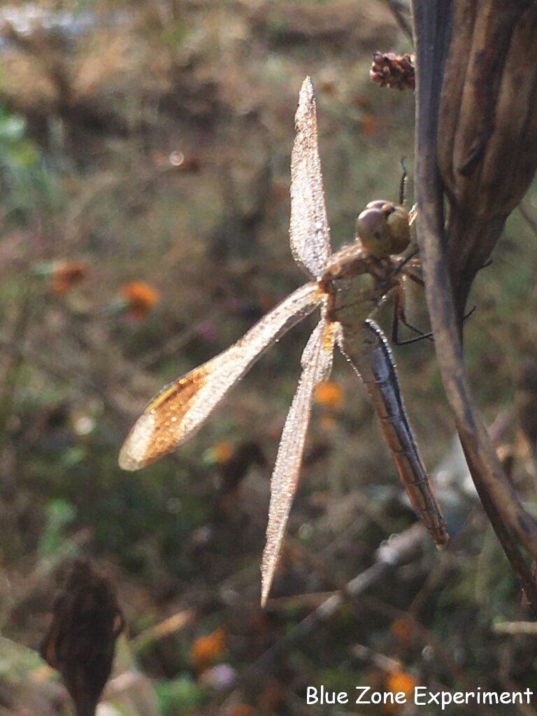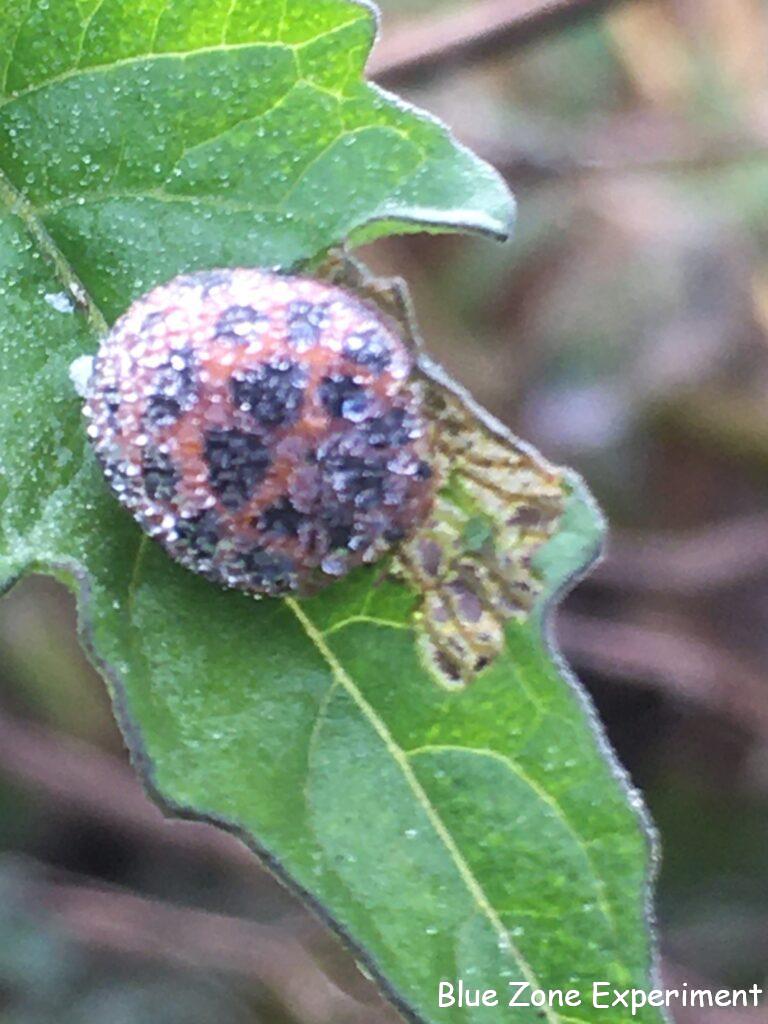 テントウムシダマシに朝露がびっしりとついています。テントウムシと違って毛が生えているので、朝露が付きやすいのでしょうね。ヤマトシジミもトンボも寒いようで、あまり動きません。春に種をまいたナスタチウムは、まだ咲いています。マリーゴールドも同様。長く咲いてくれる花はありがたいです。