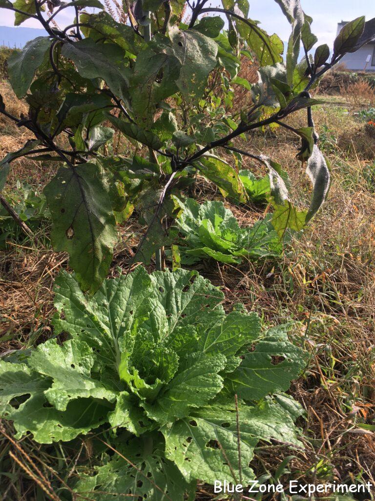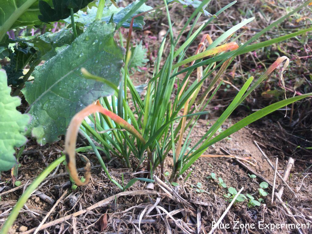 白菜は、ダイコンサルハムシの食害も落ち着いてきて、徐々に成長しています。巻くのは無理でしょうけど、来年の菜の花は確保できそうです。確か去年の秋に植えたニラは、葉先は枯れてきましたが、分けつしています。