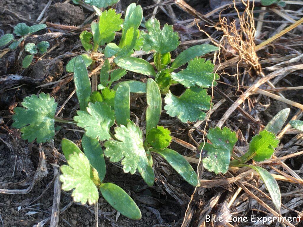 パースニップは、緑もきれいで健康そうです。ルッコラは、茂りすぎて、食べきれそうにもありませんが、生きたマルチとして活躍しています。パクチーはようやく本葉が出てきましたが、今年収穫に至るのでしょうか? 大根は、かなりせり上がってきたものもあります。イチゴの畝は、整理したいとは思っていましたが、どれが親株かもさっぱりわからなくなったので、もう完全に放任状態です。畝の下にまで伸びてきていますが、そのまま自由にさせています。