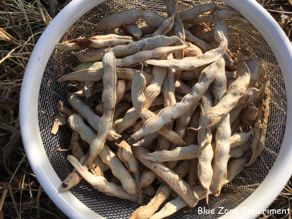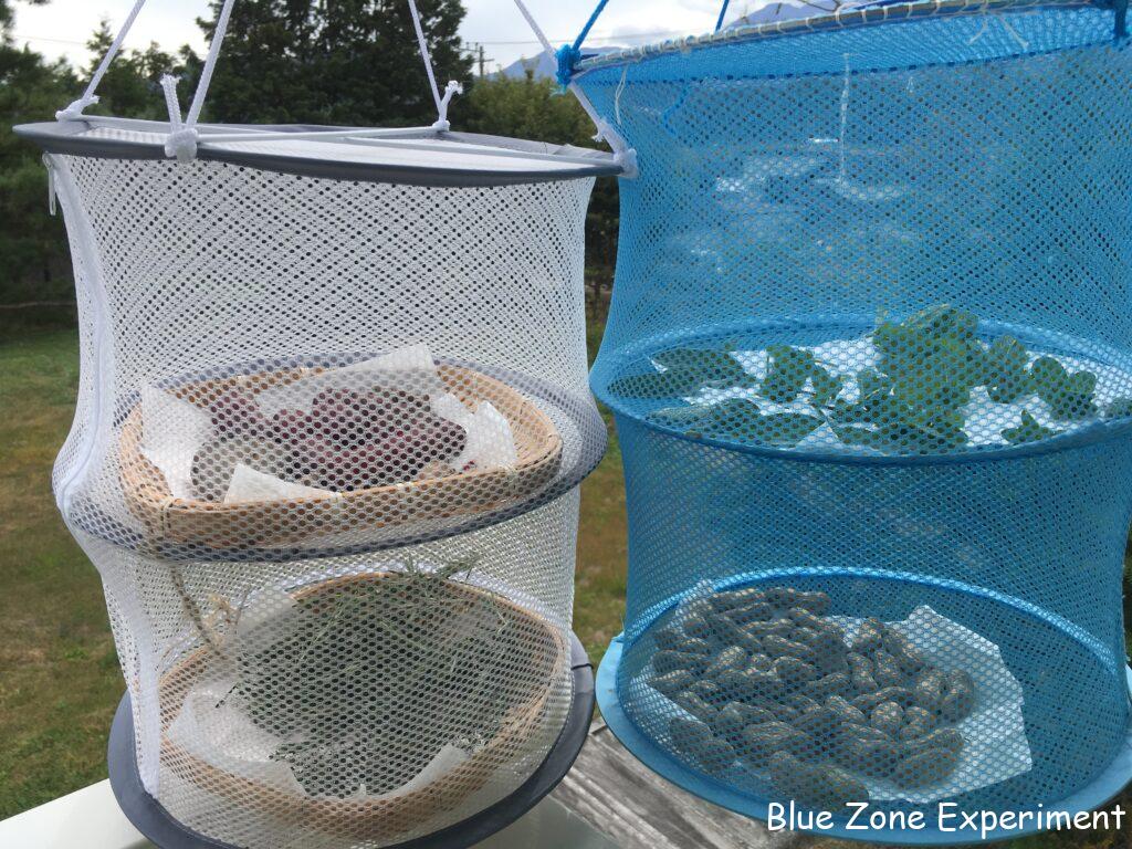 うちのベランダは、最近いろいろなものが干されています。今日収穫した白インゲンをはじめ、落花生、蒸したサツマイモ、ハーブなどは、網かごに入れて吊り下げて干しています。写真には撮っていませんが、採種した種もたくさん干してあります。良い天気が続いているので、いろいろ干すのに助かっています。