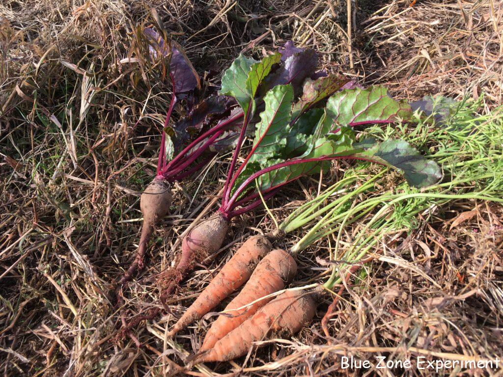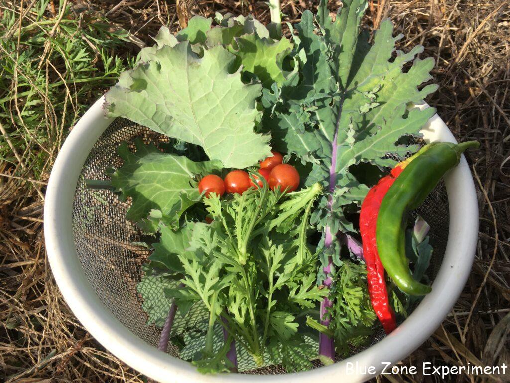 今日は、ケール、春菊、ミニトマト、伏見甘長、ルッコラ、セージ、アップルミント、ローズマリー、タイム、ニンジン、ビーツ、白インゲンを収穫しました。ハーブが多めなのは、最近コーヒーを飲むと眠れなくなってきたので、せっかく栽培しているハーブでハーブティーを楽しもうと思ったからです。春に種をまいたニンジンとビーツは、今頃やっと収穫です。長く畑にあった割に、どちらも小さめです。白インゲンは、朝だったせいか、すべての莢が湿っていましたが、支柱が二度も倒れたので、また倒れる前にと思い、色が変わっているものだけ収穫しました。