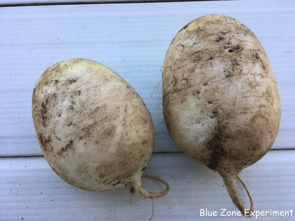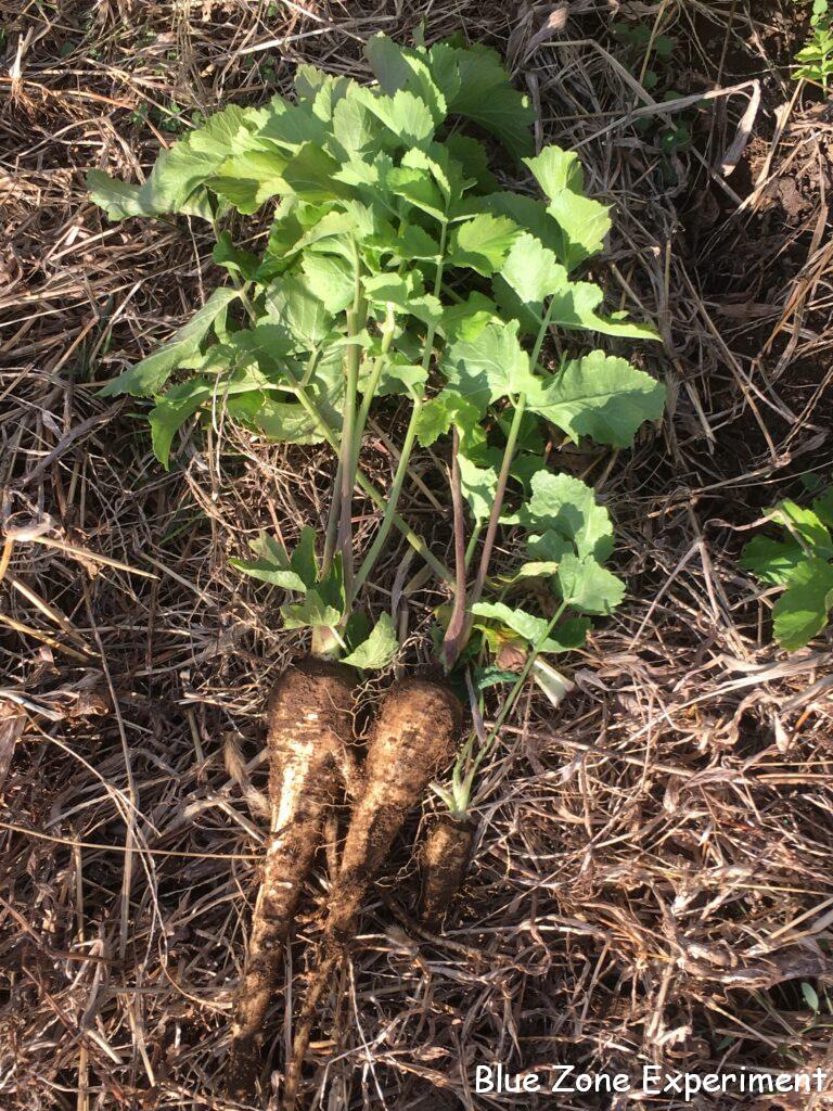 ビーツ、パースニップ、ニンジン、源助大根(畑で写真撮り忘れたので家で撮影しましたが、葉っぱもついてました)、最後のミニトマトを収穫しました。ビーツは、小さいのですが、霜にやられそうなので収穫しました。パースニップは収穫のタイミングがわからないので、とりあえず三本一緒に生えていたところを収穫してみました。ニンジンは、キアゲハの餌となってからの収獲なので、あまり成長はしていませんが、収穫できただけでもありがたいです。源助大根は、なぜか丸大根のようです。養分が足りなくて、成長できないのでしょうか? 太さは十分なのですが。