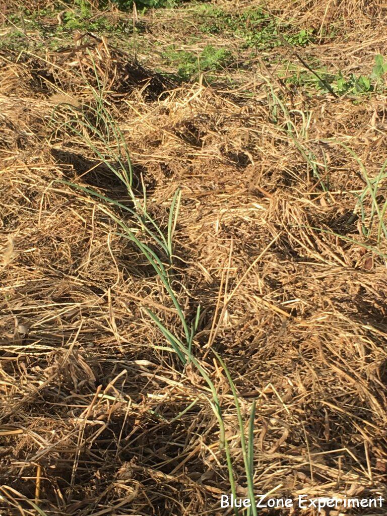 ニンニクももう一つ勢いに欠ける感じです。購入したホワイト六片はやっと芽が出てきたところなので、寒くなるまでにどこまで伸びるのか。