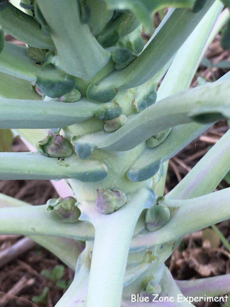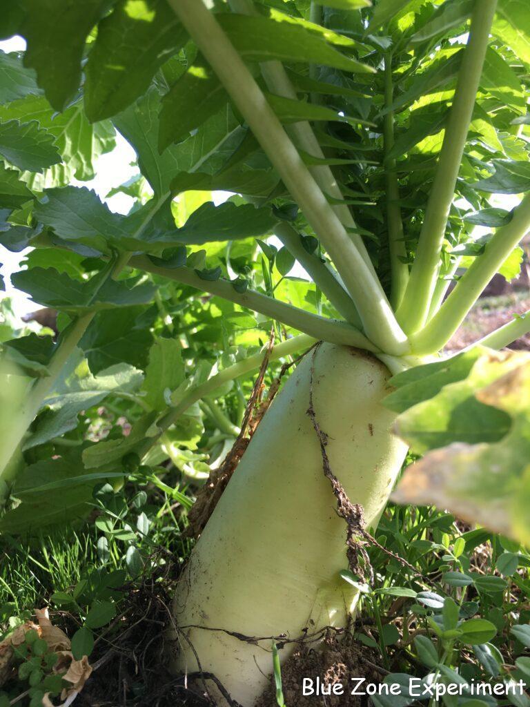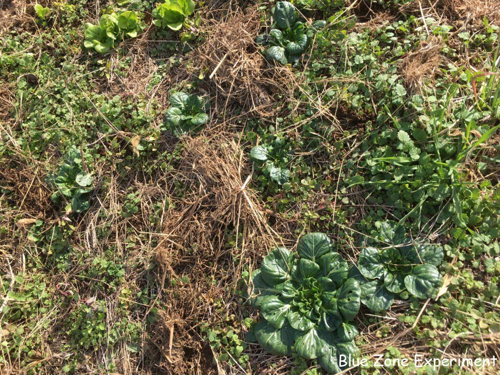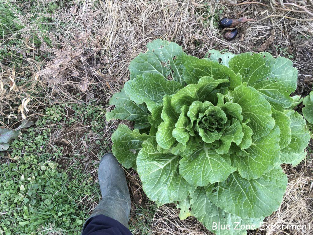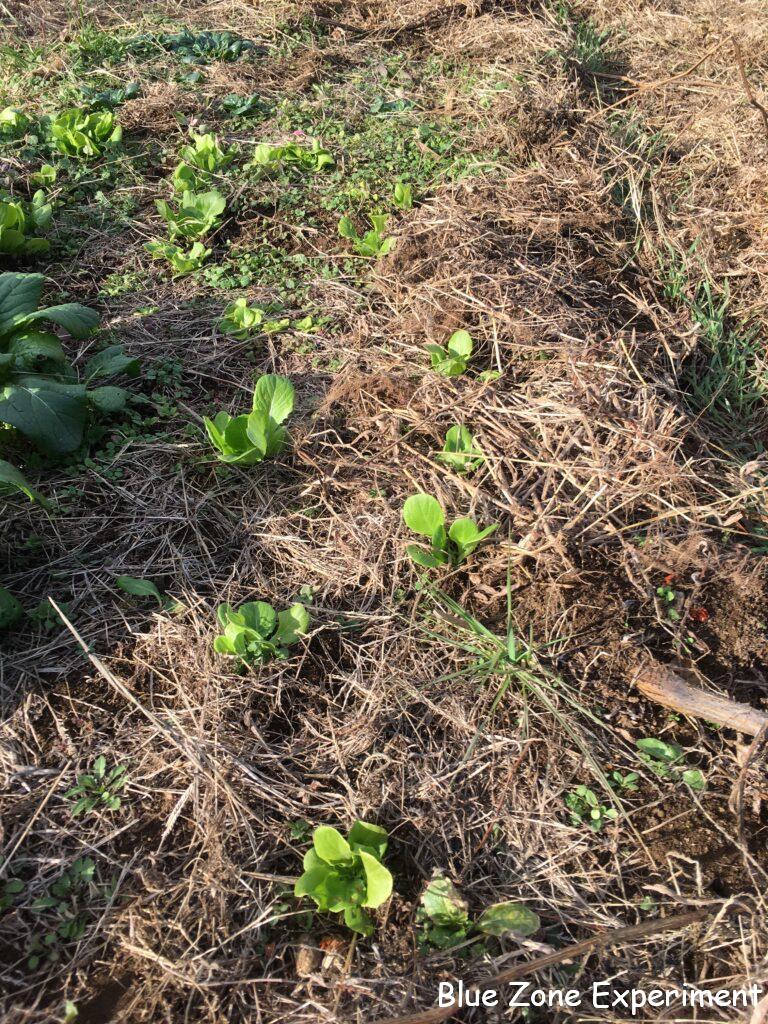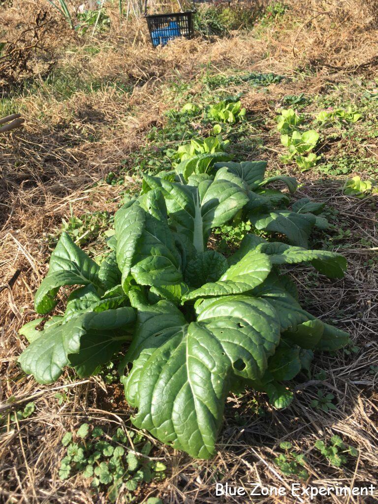 巨大白菜は、中心が少し上に伸びてきた感じです。芽キャベツの芽は、寒さでアントシアニンが生成されたのか、少し紫になってきています。そろそろ葉かきをしたほうが良さそうなので、次回忘れずにやりたいと思います。宮重大根は、まだみんな細めですが、かなり地面からせり上がってきました。ビタミン菜も立派な姿になってきました。食べたことがない野菜なので楽しみです。