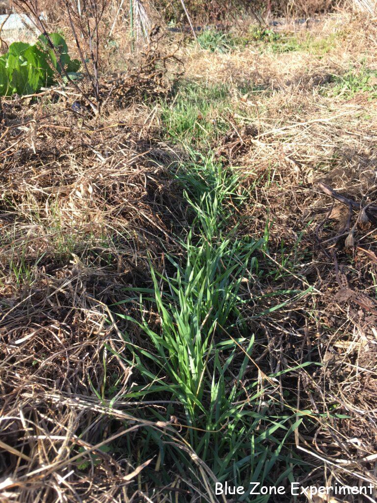 麦は、ライ麦、小麦、大麦と、どれも順調に成長しています。霜柱で持ち上がらないように、少し踏んでおきました。