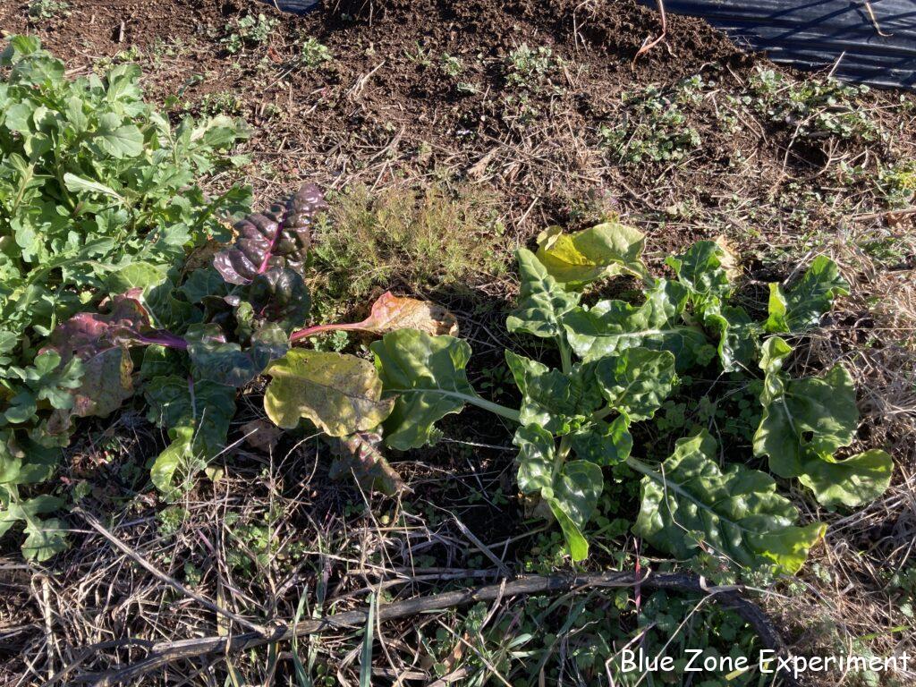 チャードは、霜にやられそうになりながらもなんとか持ちこたえています。でも、真冬の寒さは厳しすぎるので、まだ小さいですが、次回には収穫した方がいいかもしれません。サラダ菜も寒くなって葉っぱが黄色っぽくなってきました。麦類は、どれも順調です。