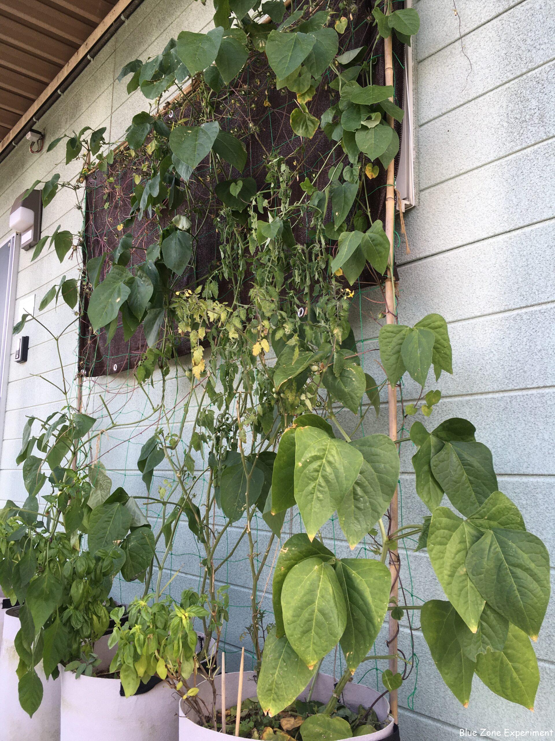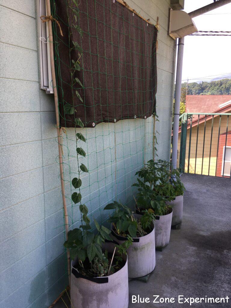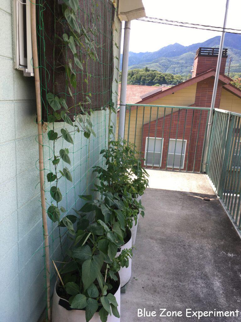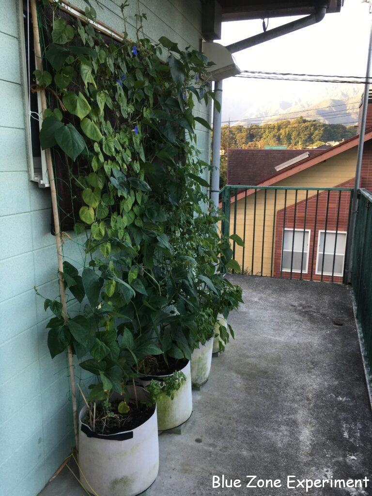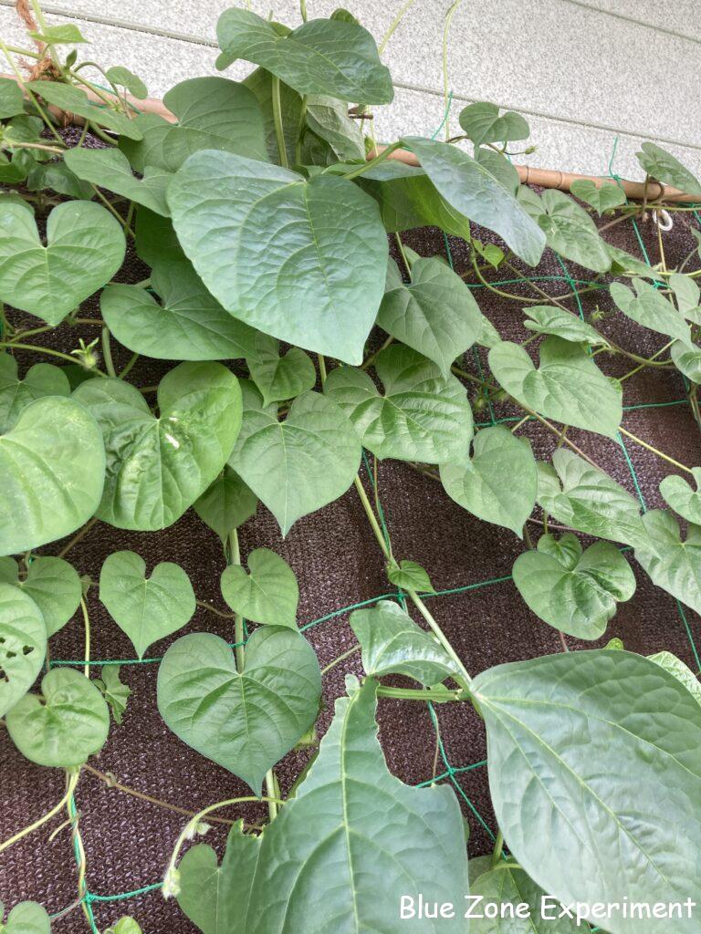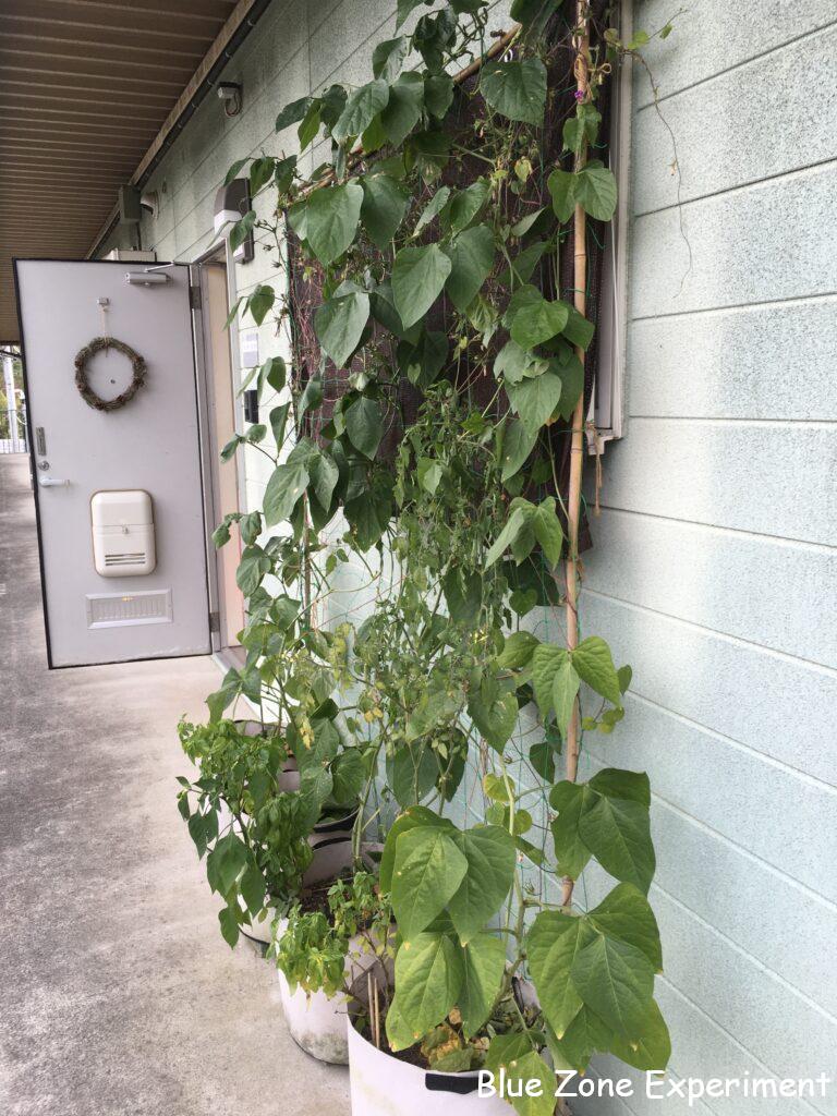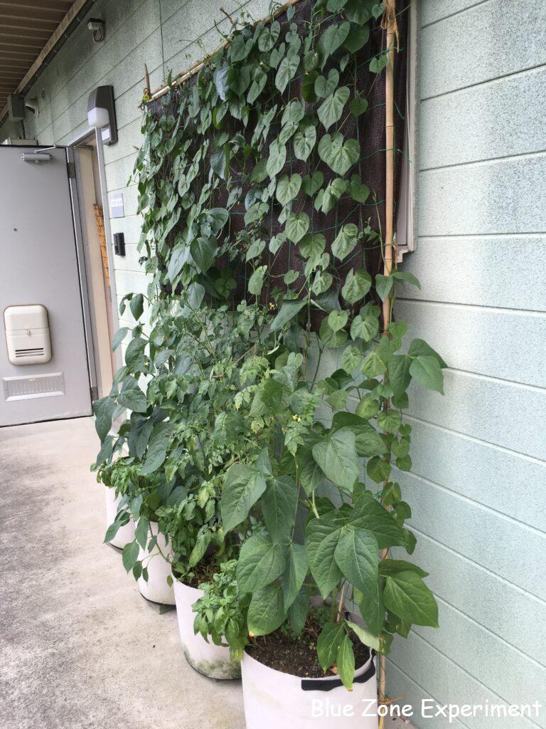去年とは植物を変えて挑戦したグリーンカーテンですが、事情により、かなりほったらかしにすることになってしまいました。今年は歴史的な猛暑だったので、植物にとっては相当厳しい条件だったはずですが、ほとんどの植物が生き残り、その生命力の強さ、そして水をやりだしてからの回復の早さには、ただただ驚かされました。水がなければ、成長を止め、その分のエネルギーを生命維持のために費やし、次に水が得られるまでただじっと我慢する。そして、水をやり始めたとたんに、何事もなかったように成長を再開し、驚くような早さで繁茂する。その姿は、実に力強く、感動的でした。