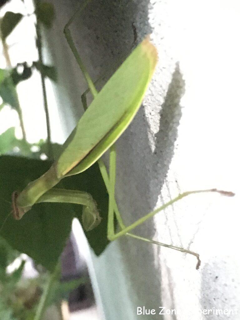 今年はほとんど留守にしていたので、カブトムシやクワガタなどのスターに会うことはできませんでしたが、去年同様、カエルはたくさん来ていて、水やりをするたびに見かけました。カマキリやツユムシもやってきました。ある日、ポットの周りに黒いフンのようなものが大量に落ちていたので、虫がいるはずだと思って探してみると、エビガラスズメの幼虫でした。巨大なので、フンも巨大でわかりやすいです。一匹捕まえて外に放ったあと、フンを掃除したはずなのにまた新たなフンが…。そのようなことが何度かあり、結局 4匹捕獲しました。かなりの大食漢で、朝顔の葉っぱはすごい勢いで食べられてしまいました。