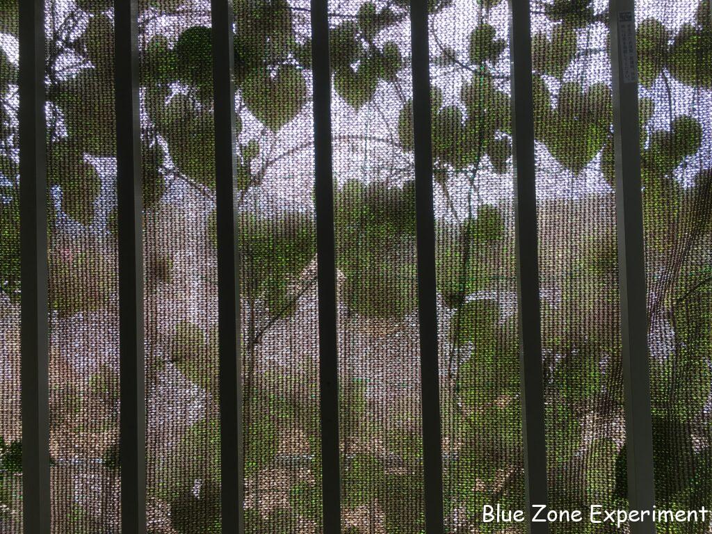 枯れた葉っぱが飛び散らないように毎日取り除いているので、カーテンはだんだんスカスカになってきました。このところ秋らしくなってきて、もう日よけは必要ないのでちょうどいいです。