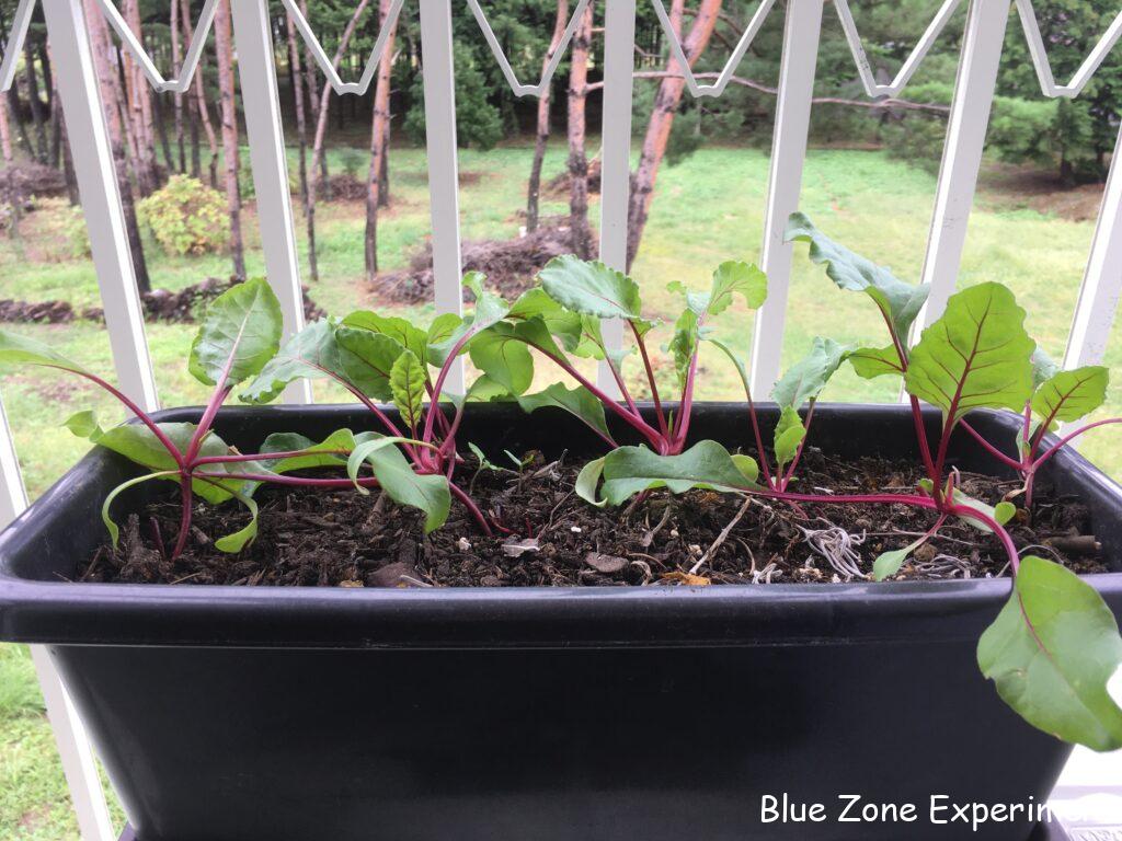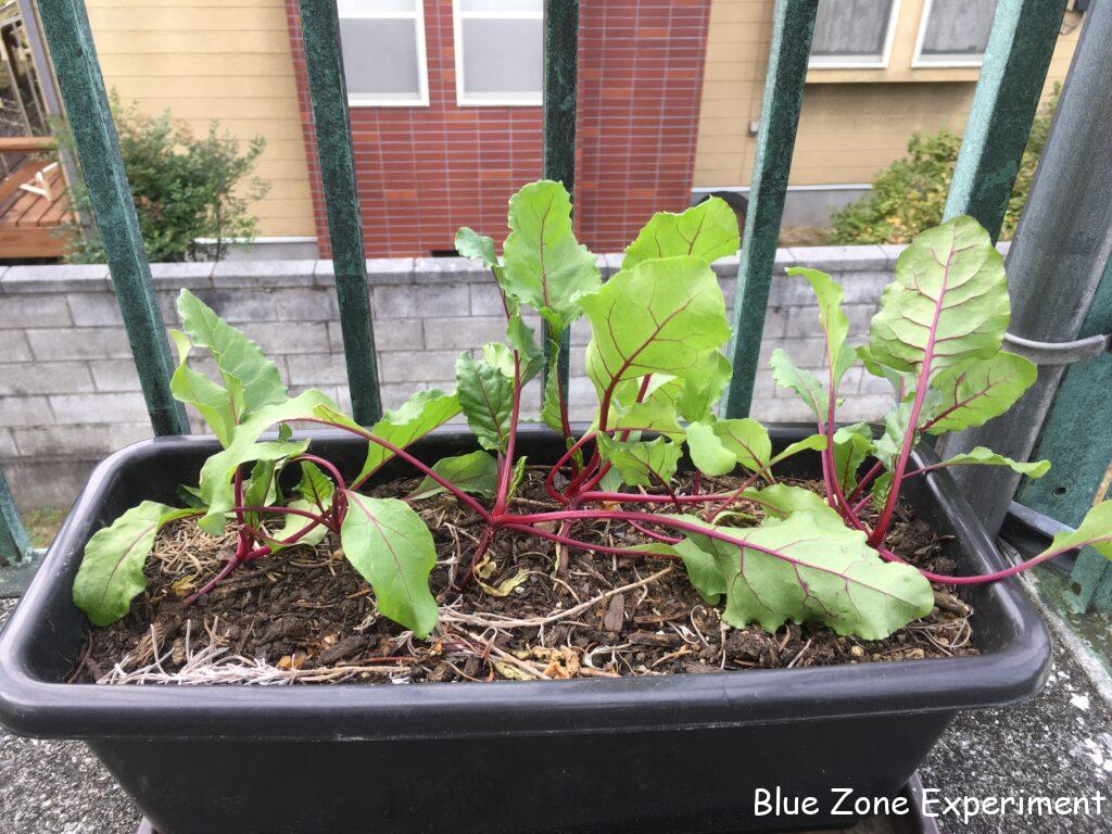 9 月になって、あいていたプランターにビーツの種をまいてみました。順調に発芽して成長していたのですが、少し背が高くなると、倒れてしまい、土寄せをしても立ち上がりません。その後、間引いて、強いものだけを残すと、少しは立ち上がった感じなので、順調に育ってくれるといいのですが。プランターが小さいので、大きく育つとは思えませんが、少なくとも葉っぱの部分が食べられるのではないかと思います。間引き菜もパスタに入れて食べました。