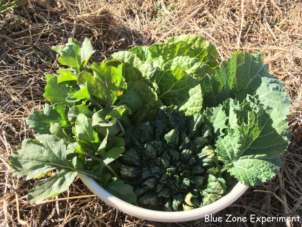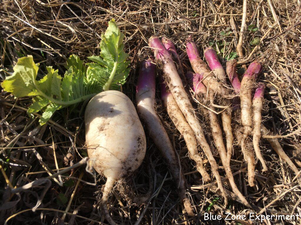 今日はもう一つの畑にもちらっと挨拶してきました。二つの畑で収穫できたのは、タアサイ、カラシナ、ルッコラ、巻いていない白菜の葉、源助大根、日野菜カブです。寒い中、貴重でありがたい恵みです。