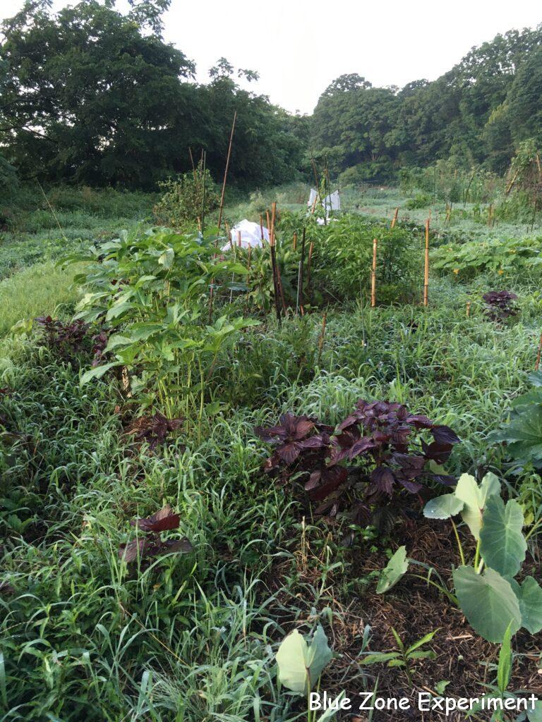 この春、3 年間続けていた貸農園の畑を返還して、今の畑だけに絞ることにしました。貸農園の畑は、ほんの少しずつでも土がよくなっていくのを実感していただけに、やめるのは辛い決断でしたが、畑が二か所に分かれているのはとても大変だったので、正しい選択だったと思っています。今の畑は自然農専門なので、周りの人も全員自然農。農薬や化学肥料はもちろん、有機肥料を使う人もいません。一年目の去年は、その畑の小さな一区画からはじめました。だんだん場所が足りなくなり、徐々に区画を増やして、今は大小 5 区画を借りています。面積は測っていないのでわからないのですが、100 平米の前の畑の 2 倍以上はあることは間違いありません。前の畑は最初二人でやっていたので、そのときと比べると、今の作業量は 4 倍以上ということになります。暑い時期は早朝の短い時間しか作業できず、梅雨の雨とともに驚くほどの早さで伸びる草の勢いに手が回らなくなってしまい、一部手つかずになっている部分もあります。