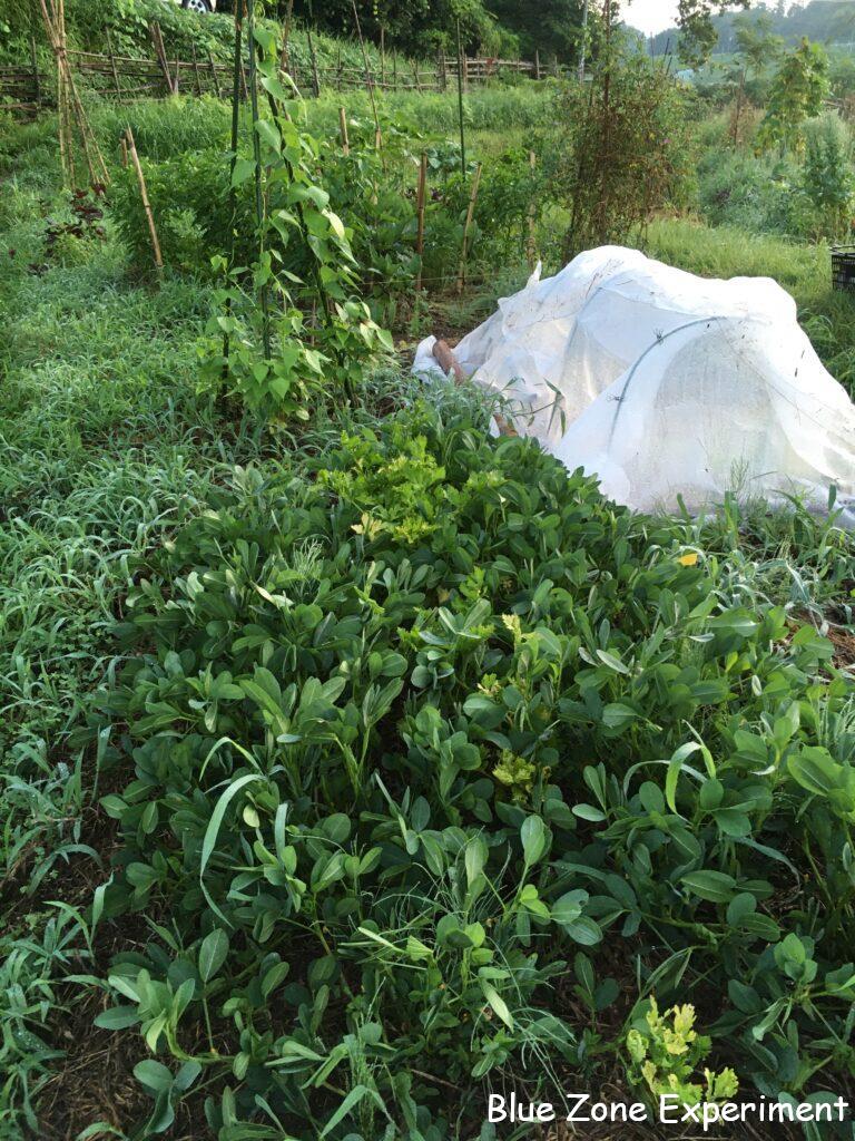九条ネギは、4 月 3 日に種をまき、6 月 12 日に定植しました。定植後雨が少なく一旦枯れそうになっていましたが、復活して今は元気です。落花生は自家採種したものを三か所にまきましたが、一か所だけ好調です。あとはなぜか全然大きくならないのですが、一か所でも元気に育っていて良かったです。セロリは長期間育苗したので力が入っていたのですが、どうも失敗のようです。これも同じく三か所に植えたのですが、この写真の場所が一番マシで、他はさらにひどい状態です。写真のものも黄色くなって、今は落花生に覆われてしまっています(左右に落花生、中央にセロリ)。