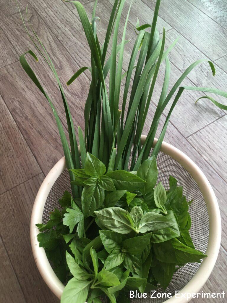 今朝は、グリーンカーテンの鉢に植えたスイートバジルも収穫しました。これはすでに何度か収穫していています。バジルは大好きなので、畑でも家でもたくさん収穫できてうれしいです。
