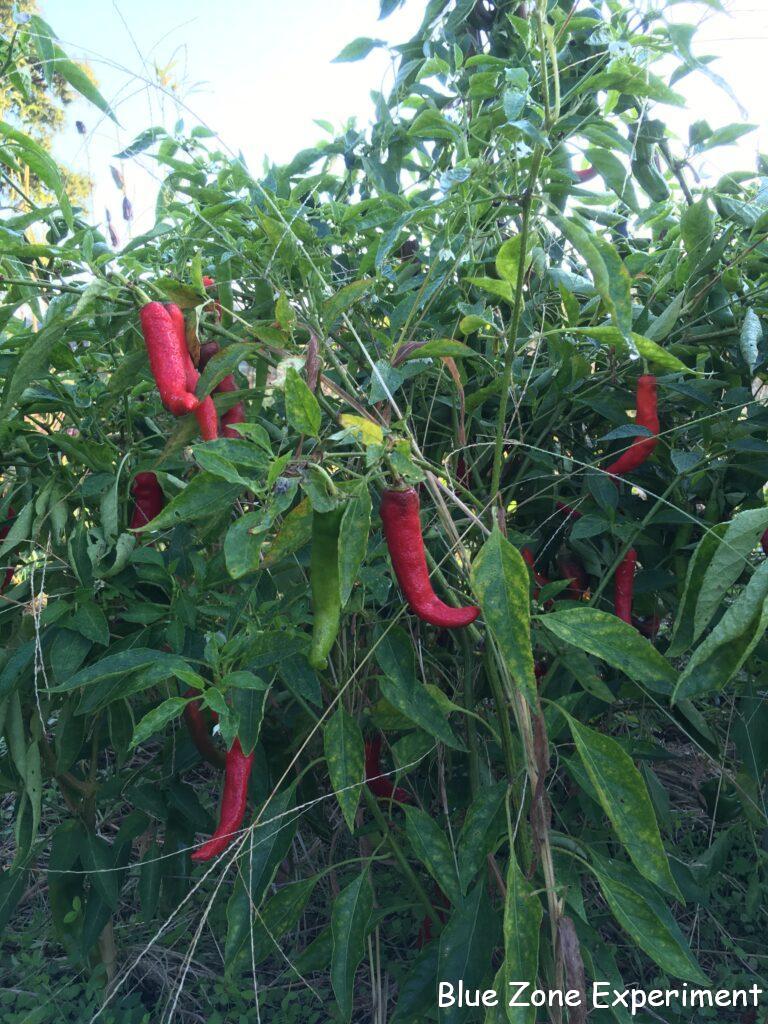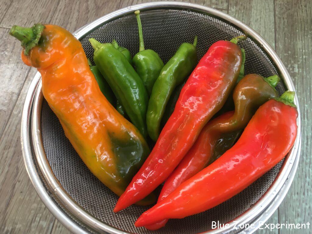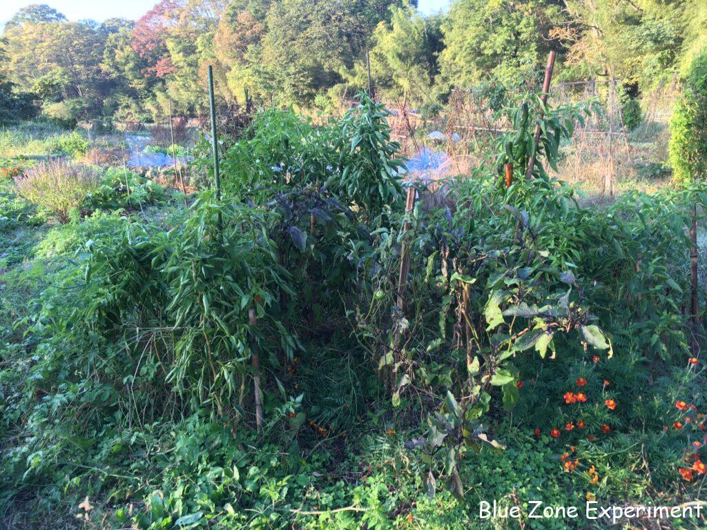 今日も少し夏野菜を収穫しました。今も収穫が続くピーマンなどは、かなり草丈が高くなり、茎も木のように太くたくましく育っています。ナスは、小さい実がいくつかついていますが、それらを収穫したら終わりのようです。