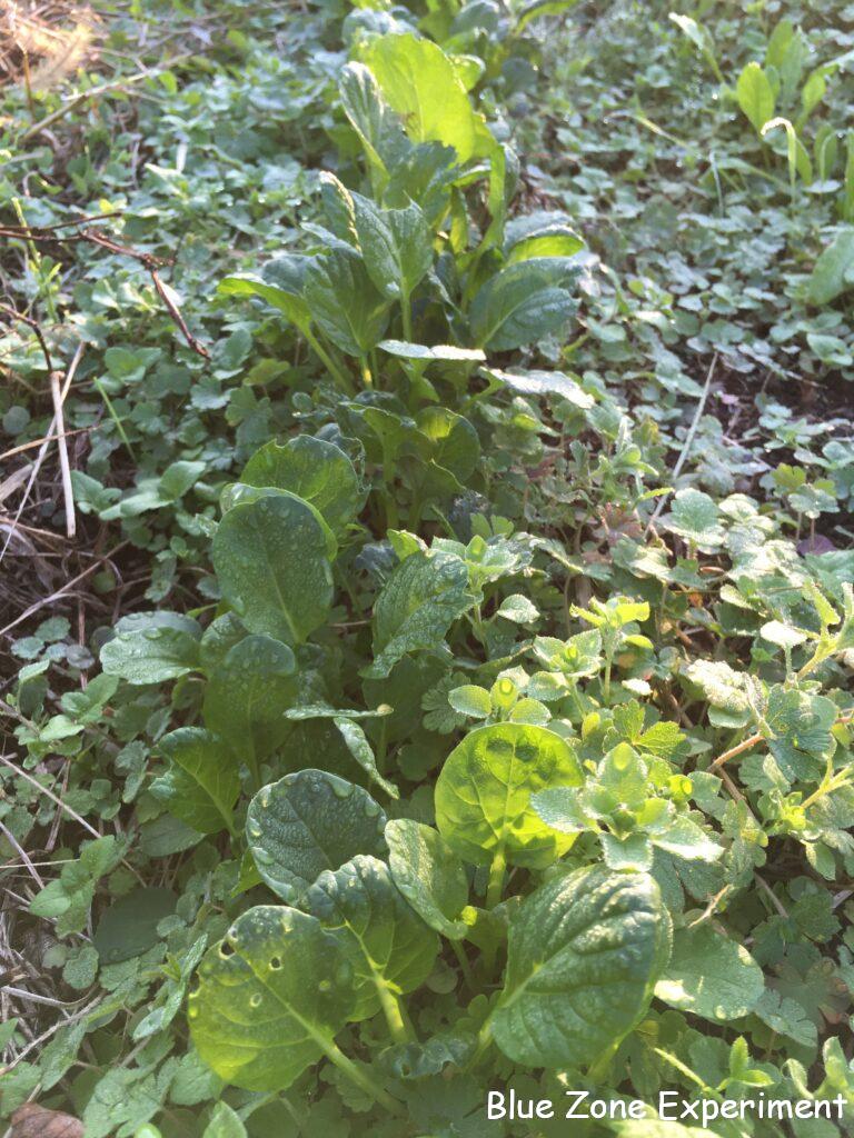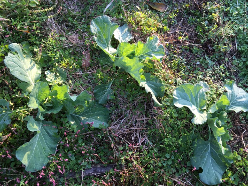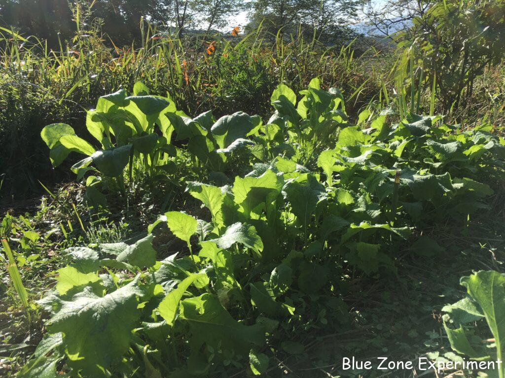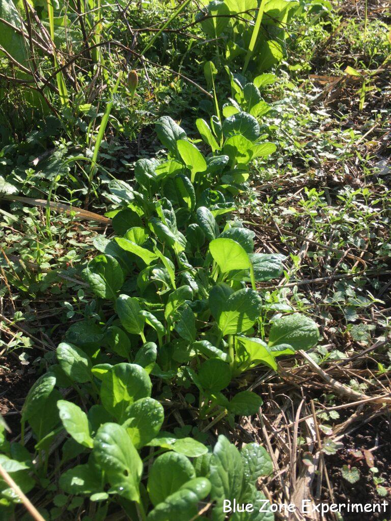 その他のアブラナ科野菜も元気です。何度も種をまき直して、何が何かわからず、違う種類が混じっている場所もあると思いますが、大きく育ってきたら正体がわかると思います。