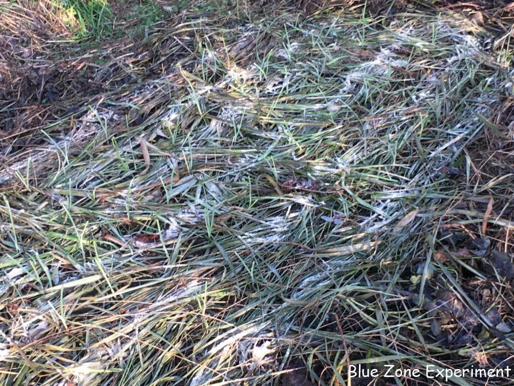 一週間前に定植したタマネギの苗は、一昨日の大雨でどうなったかと少し心配でしたが、元気にピンと立っていました。今朝は、条間に米ぬかで補いをしました。せっかく米ぬかがあったので、ほうれん草と育ちの悪いブロッコリーも少し補いました。