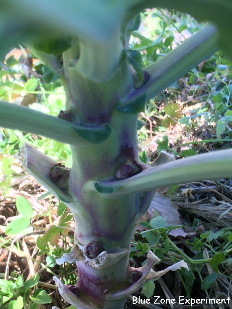 芽キャベツは、暑さで育苗が遅れてしまったため、まだ小さく、脇芽も大豆ほどの大きさです。写真にはありませんが、同時に育苗したブロッコリーも小さいままなので、収穫できるとしても春でしょうか。