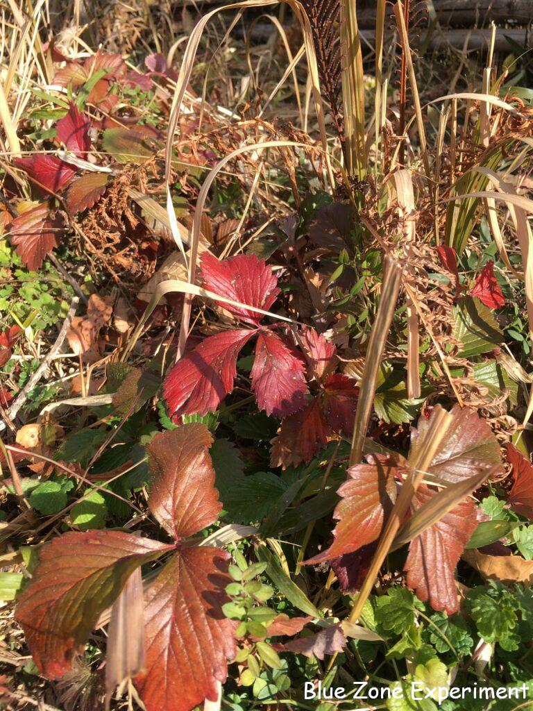 寒さに強いほうれん草は、ほんの少しずつ成長しているようですが、地力不足の私の畑では、まだまだ立派なほうれん草はできそうもありません。酸性土壌を嫌うため灰をまくといいようなので、薪ストーブの灰を分けてもらえたらまいてみようと思います。イチゴはすっかり紅葉しています。混みすぎなのでもう少し間引くべきなのですが、もったいなくてほとんど間引けませんでした。