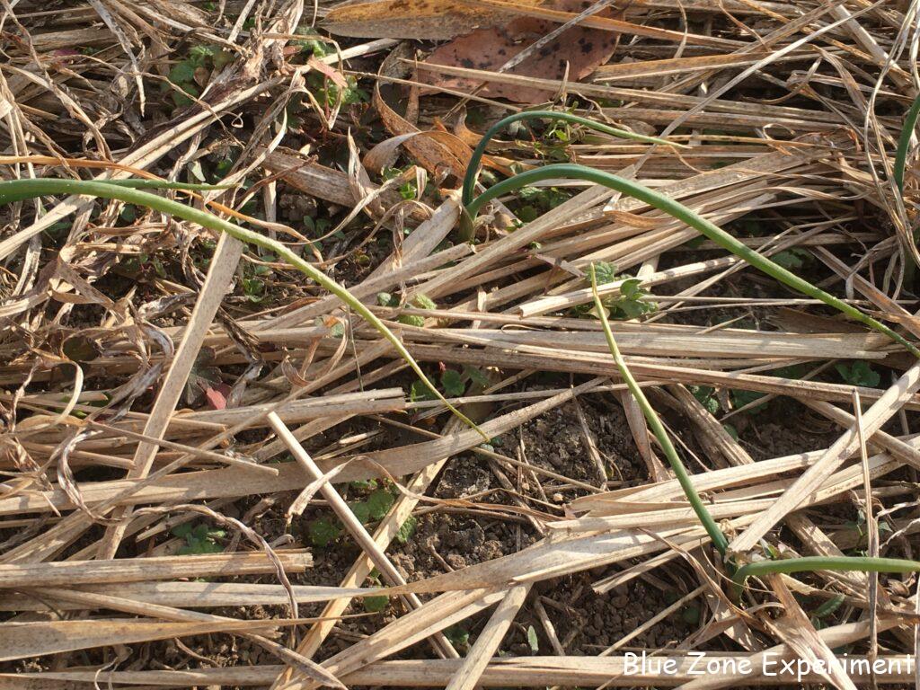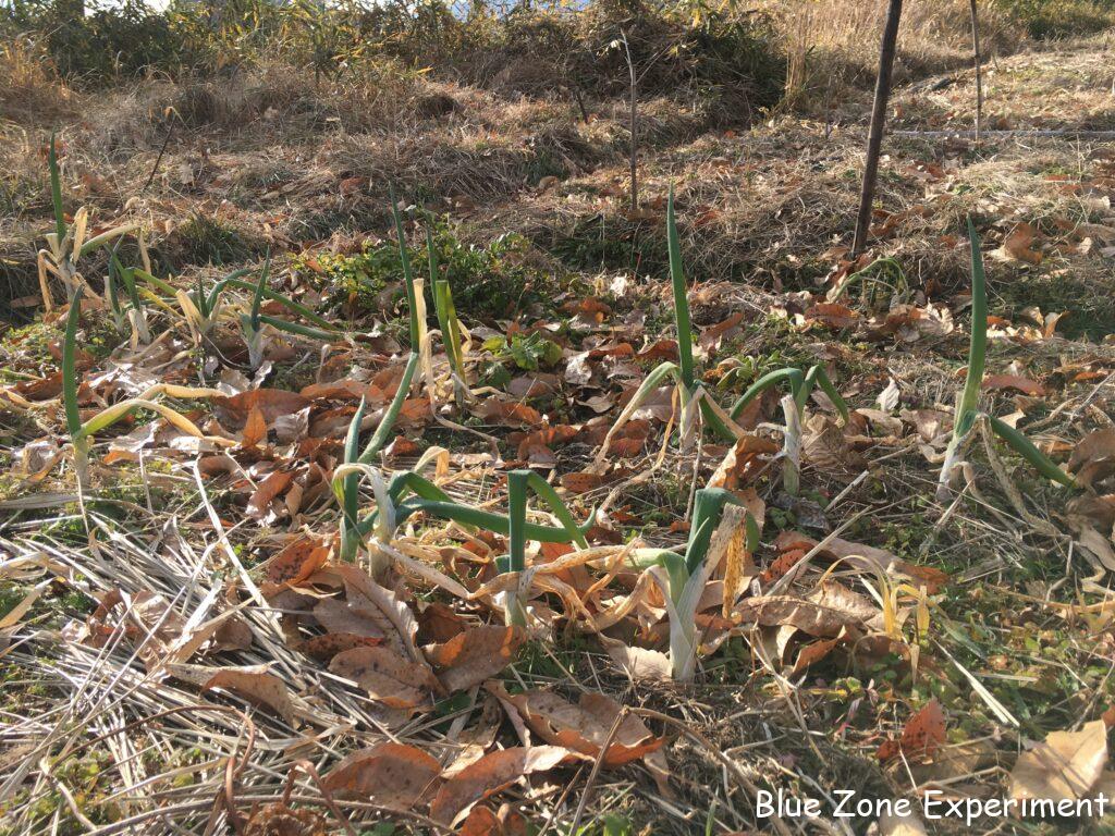 タマネギは、苗づくりに失敗したあと、隣町まで買いに行って植えたものですが、苗が小さかったのと虫にやられたので、かなり株数が減っています。残ったものもとても小さいので、生き残れるのか不安なところです。ニンニクもあまり成長しないまま冬が来てしまいました。去年は春に虫に食われて終わってしまいましたが、今回はどうでしょうか。九条ネギは、強風ですっかり折れ曲がっています。分けつしていたものを家に持ち帰って、プランターに植え替えてみましたが、日当たりが悪く、北風にさらされる厳しい環境なので、ほとんど成長は見られません。
