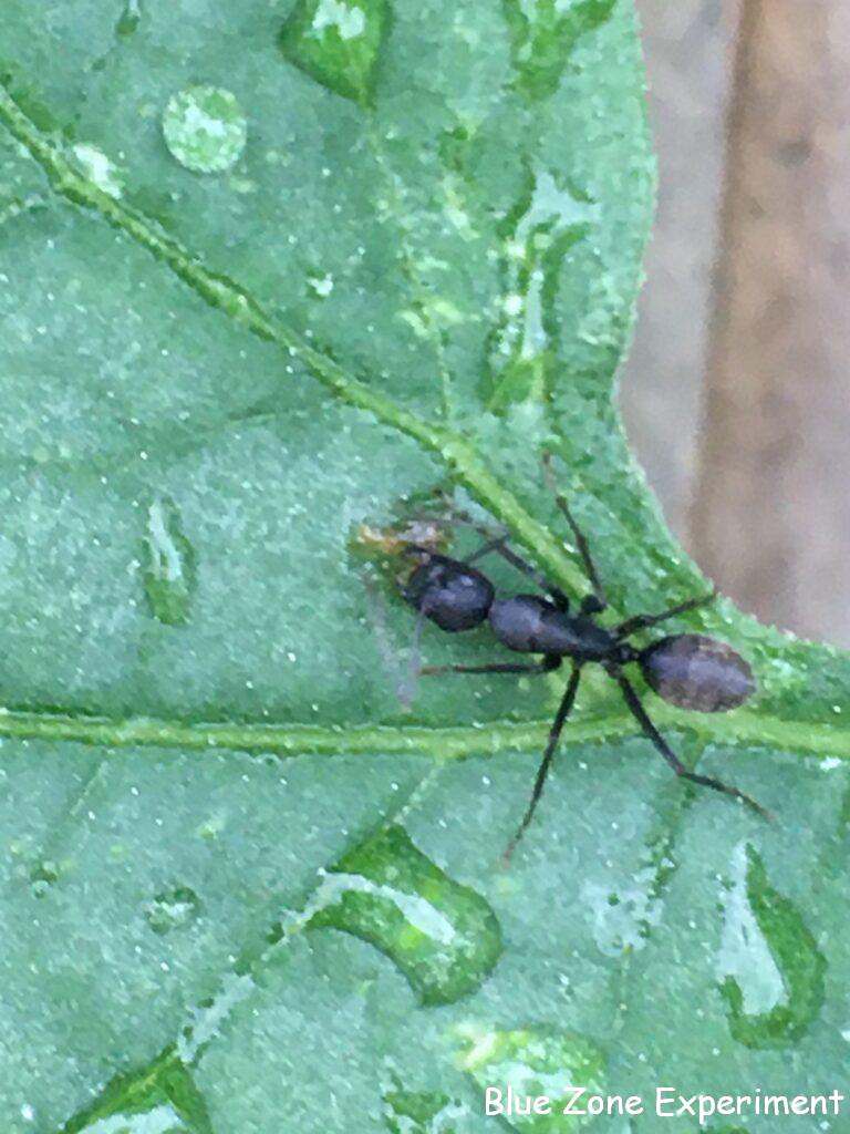 今年はハダニの被害がとにかくひどかったです。ハダニは乾燥・高温を好み、水が苦手ということなので、毎日葉っぱに水をかけてかけてかけまくりました。ジョウロで水をかけながら葉っぱについたハダニを洗い流すのですが、数時間経って見てみると、またびっしりとついています。恐るべき繁殖力です。特に被害を受けたディルとパクチーは全滅しました。水をかけすぎたせいで、不織布のポットに苔が生え、写真にはありませんが、キノコも生えてきました。一日何度水をかけたかわかりませんが、梅雨時期になってもおさまらず、梅雨が明けて猛烈に暑くなったころにやっと落ち着いてきました。ディルとパクチー以外は、ハダニにやられて弱っていたものの、しばらくして復活しました。その後もハダニはすっかりいなくなったわけではありませんが、アリがやってきて食べてくれていたので、大発生することはありませんでした。二階のコンクリートの上なのに、ハダニはどこからともなくやってきて繁殖し、それを目当てにアリがやってくるのだからすごいものです。