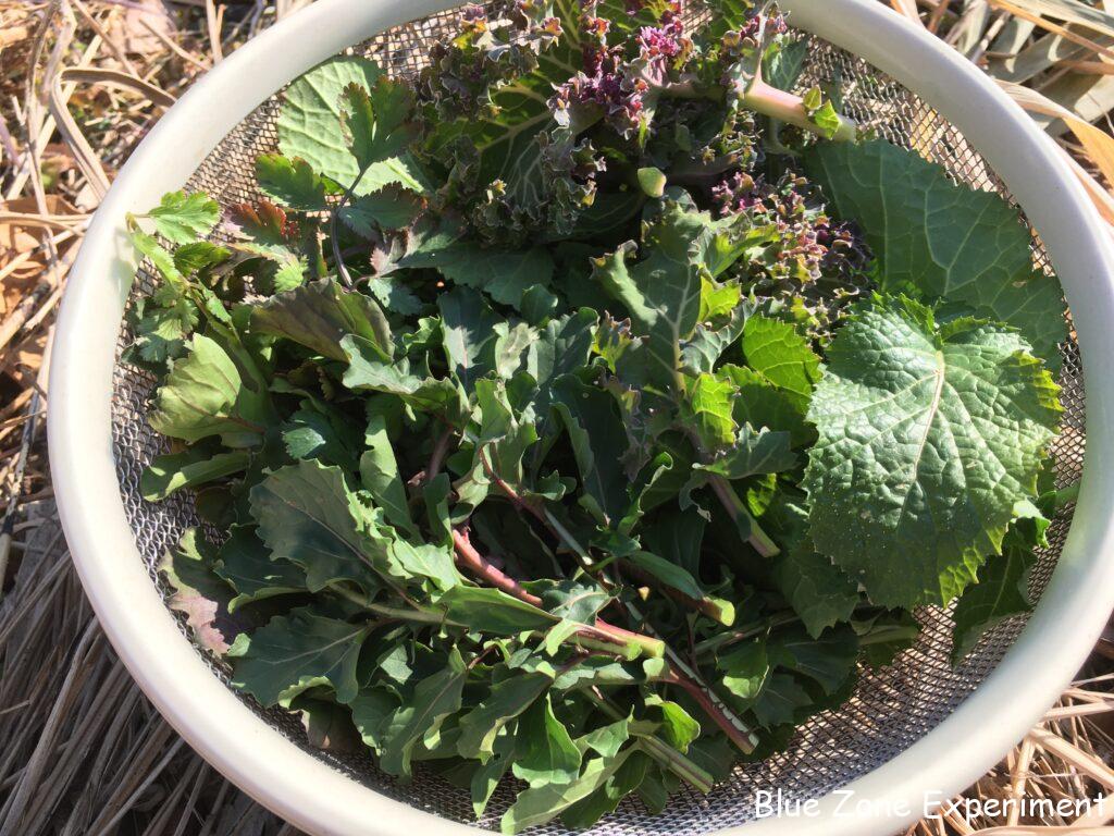 真冬の畑ですが、ほんの少しだけ収穫できました。カラシナ、ルッコラ、ケール、パクチーです。今月 12 日にも畑に来たのですが、そのときにもカラシナ、ルッコラ、パクチーを収穫しています。実りのないこの時期、ほんの少しの恵みがとてもありがたく感じられます。
