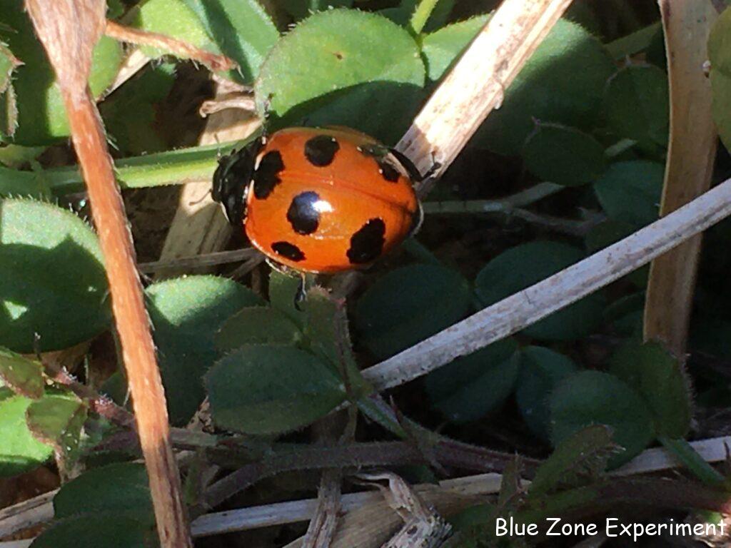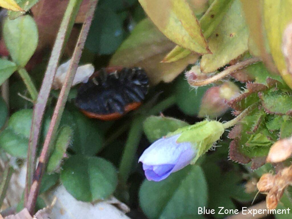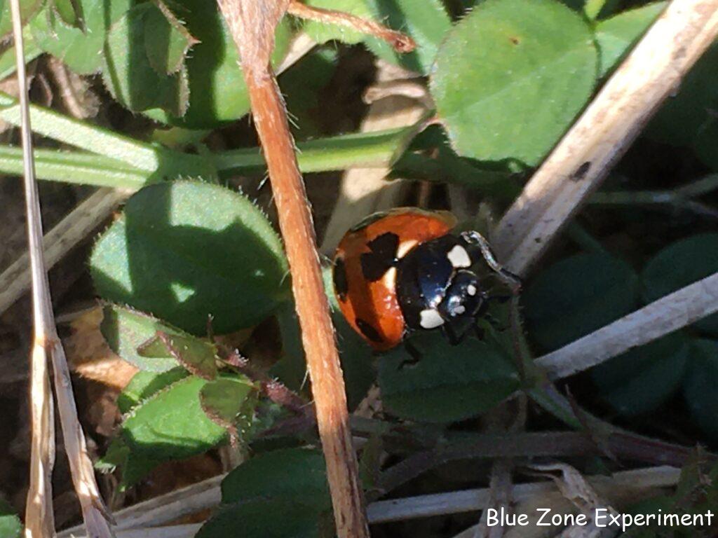 暖かいのでテントウムシが出てきていました。写真を撮っていたら、途中で死んだふりをしました。