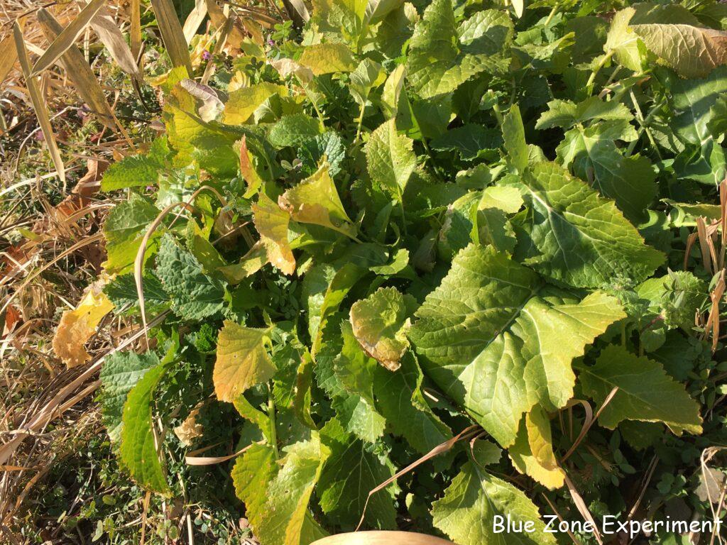 でも、近づいてみると、少しだけ緑が残っています。カラシナやルッコラ、ほうれん草、それから冬草。暖冬とはいえ、極寒地域なので、ほぼ毎朝霜は降りています。そんな厳しい環境で生き抜く力には驚かされます。