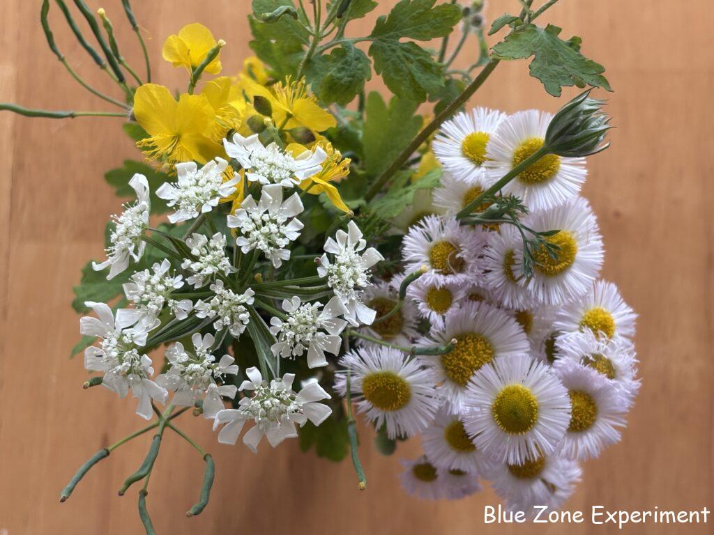 ワイルドストロベリーが元気に茂ってきました。その間からは、こぼれ種のオルレアがたくさん顔を出しています。今はつぼみですが、数日中に咲きそうです。前回、家に持って帰ったつぼみの状態のオルレアは、もう開花しています。