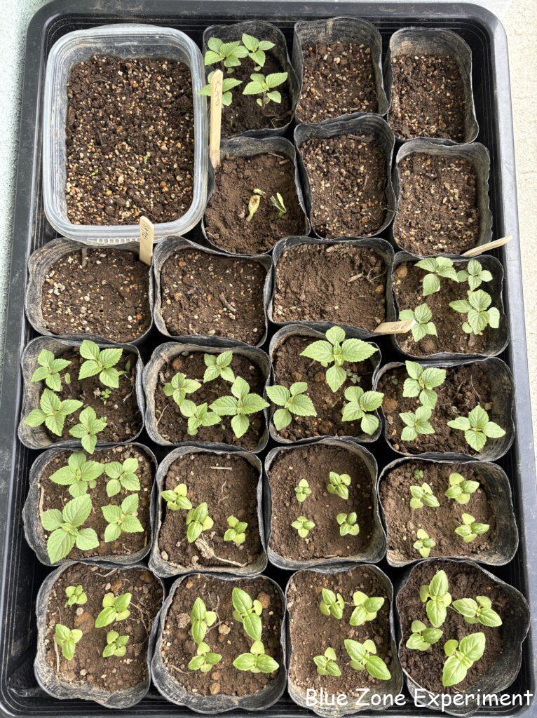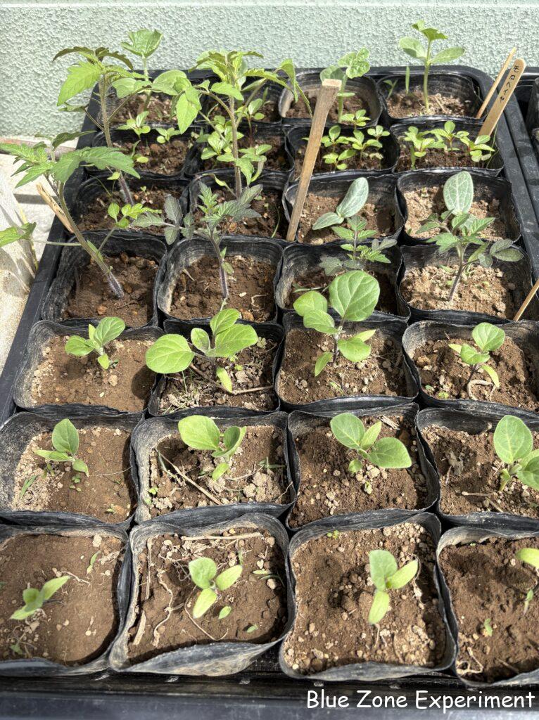 ここ何年かは、春の時期が短く、いきなり夏が来るような感じでしたが、今年は気温が低めで、春らしい気候が続いています。そのせいか、苗の成長は全体的にゆっくりのようです。あと一週間もしたらナスやピーマンも畑に出す時期ですが、それまでには大きくなりそうにもありません。5 月末くらいになるでしょうか。サツマイモは、徐々に育ってきてはいますが、苗をとれるほどに大きくなるには、まだまだ時間がかかりそうです。6 月上旬の植え付け時期に間に合いますように。数日前に、カーボロ・ネロ、熊本ナス、ホーリーバジルの種を新たにまいたので、こちらの発芽も待ち遠しいです。