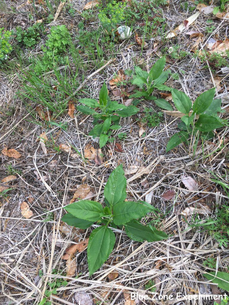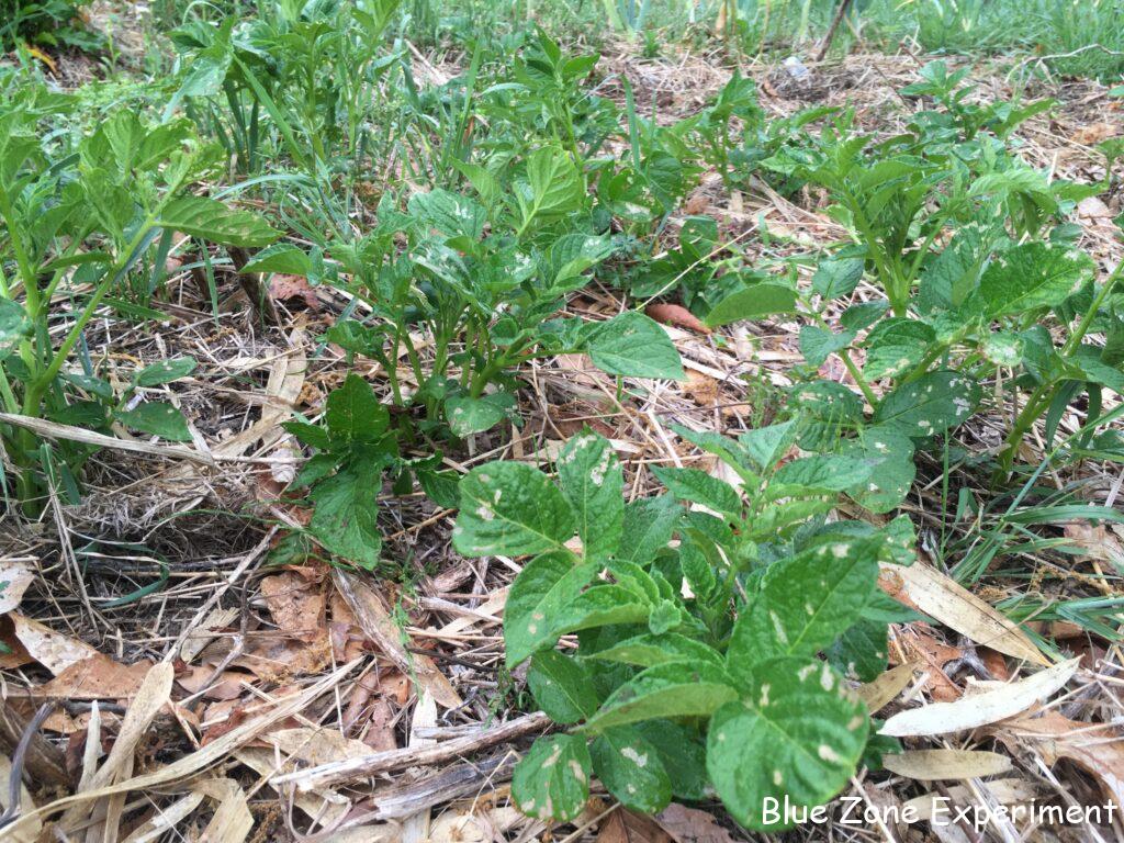 ジャガイモは、テントウムシダマシにかなり食べられていますが、それでも元気に成長しています。キクイモも続々と発芽して、たくましく育っています。