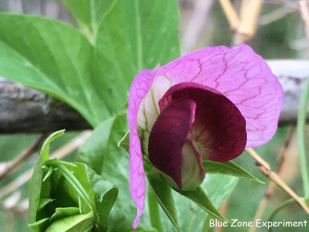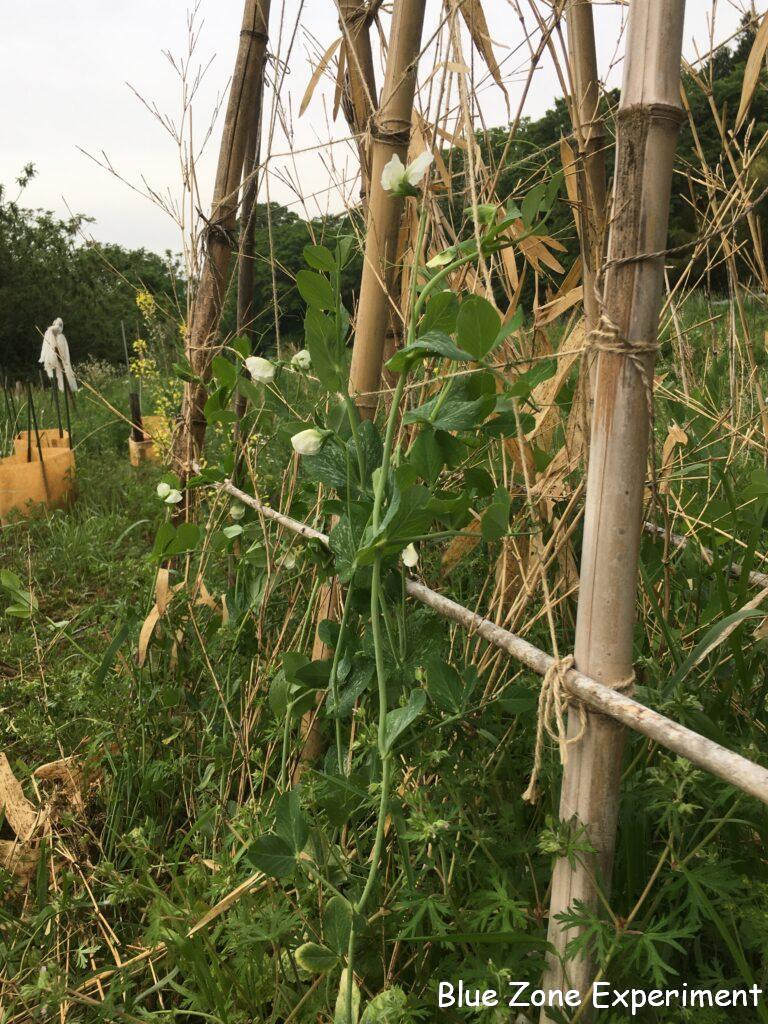 3 月 1 日に種をまいたスナップエンドウは、暖かくなってどんどん成長してきました。去年自家採種したものは白い花、今年種を購入したものは赤い花です。購入した種は、ピッカピカスナップエンドウというもので、莢に白い粉が吹かず、その名の通りピカピカしているということです。