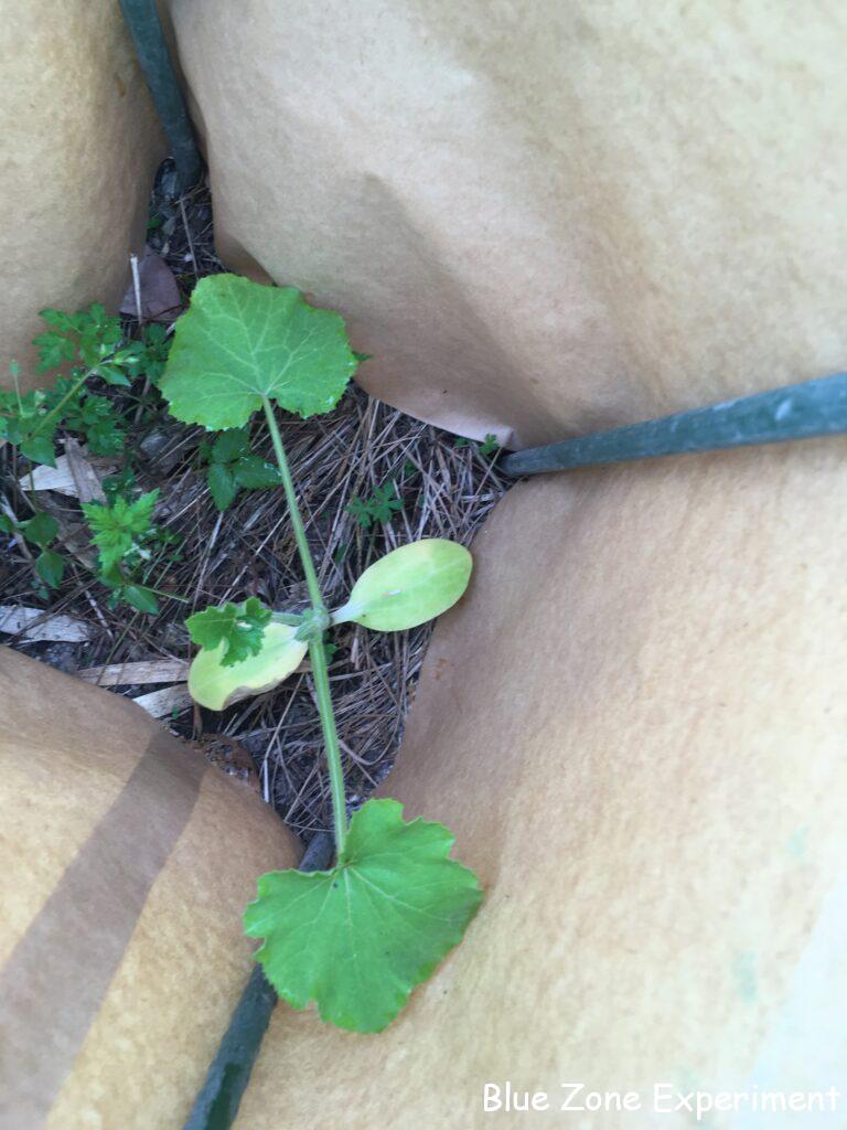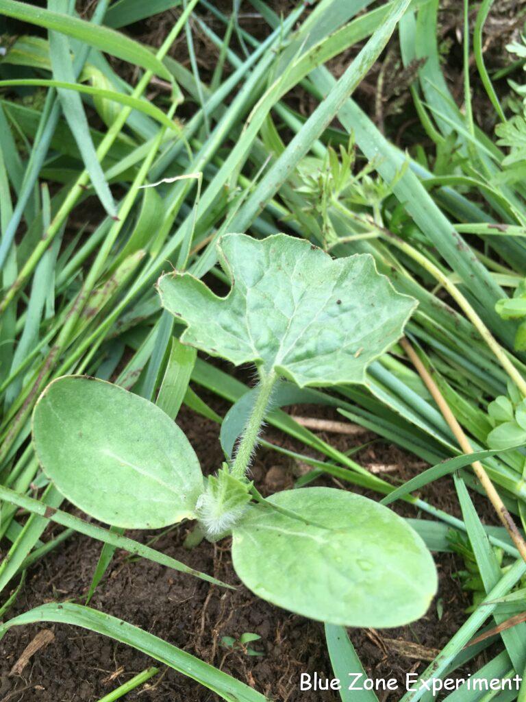 4 日前に発芽を確認したキュウリですが、さらにたくさん発芽していました。その横に種をまいたラディッシュは、一部虫に食われてしまいましたが、おおむね順調です。ラディッシュは、ウリハムシよけのつもりでキュウリの西側に種をまきましたが、まだ種が余っていたので、今日は東側にもまきました。さらに、病気予防のためのネギも近くに植えました。同じウリ科のカボチャもたくさん発芽しています。それから、4 月 28 日に種をまいたオクラがやっと芽を出しました。やはりオクラは、寒いとなかなか発芽しませんね。