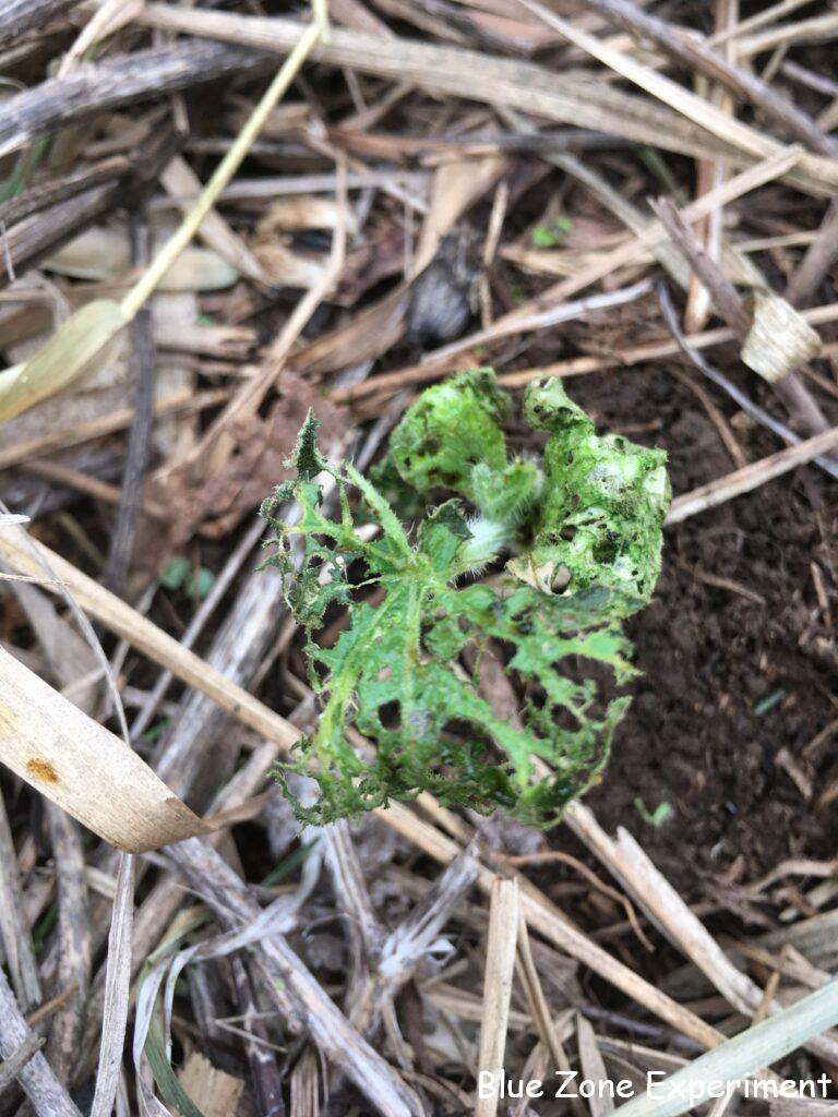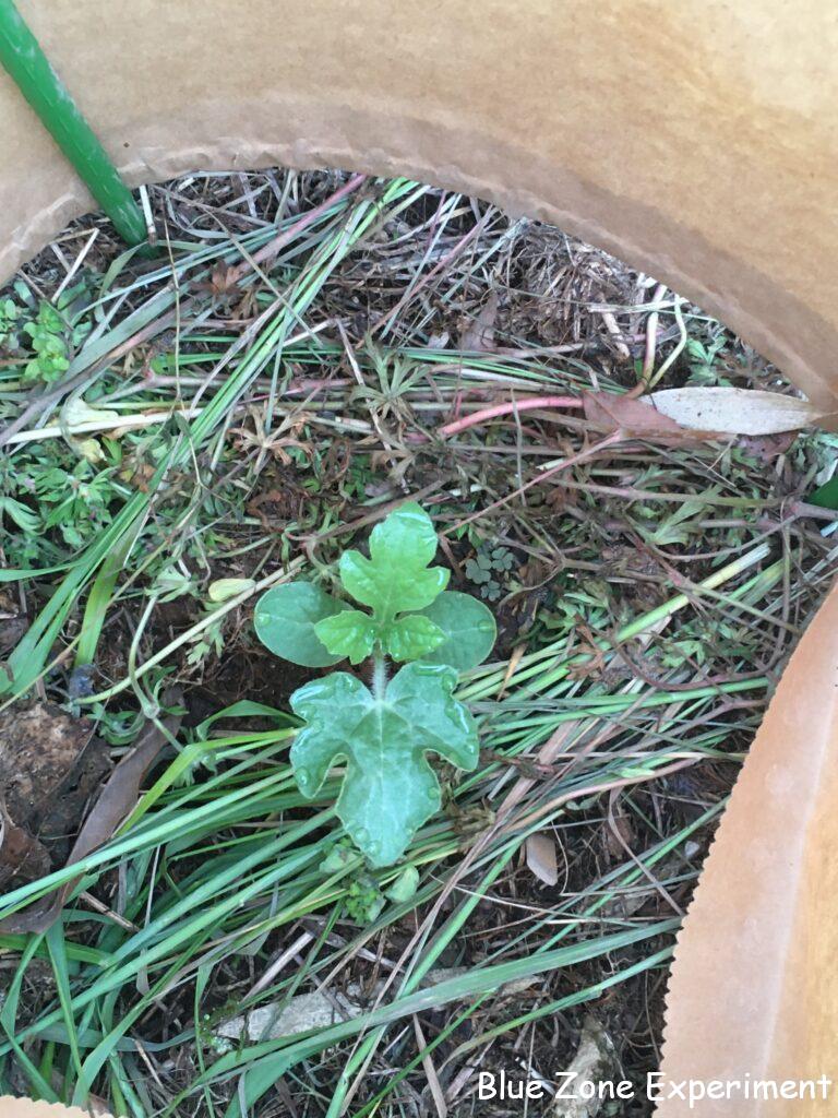 オレンジ小玉スイカは、3 日前に4 株植えましたが、今のところすべて元気そうです。気温ももう十分高いので、このまますくすく育ってくれると期待しています。あんどんをかけていなかったカボチャは、三日ですっかり食べられてしまい、見る影もありません。