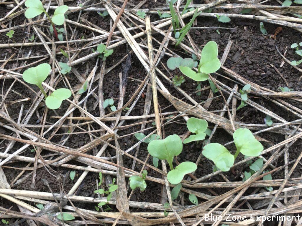 写真を撮り忘れましたが、順調に発芽していたキュウリは、結構虫にやられていました。ウリハムシはニラが嫌いなようなので、近くに生えているニラをちぎって、周りにばらまいておきました。近くに種をまいたラディッシュはよく発芽しているので、早く成長して、キュウリをウリハムシから守ってくれるといいのですが。