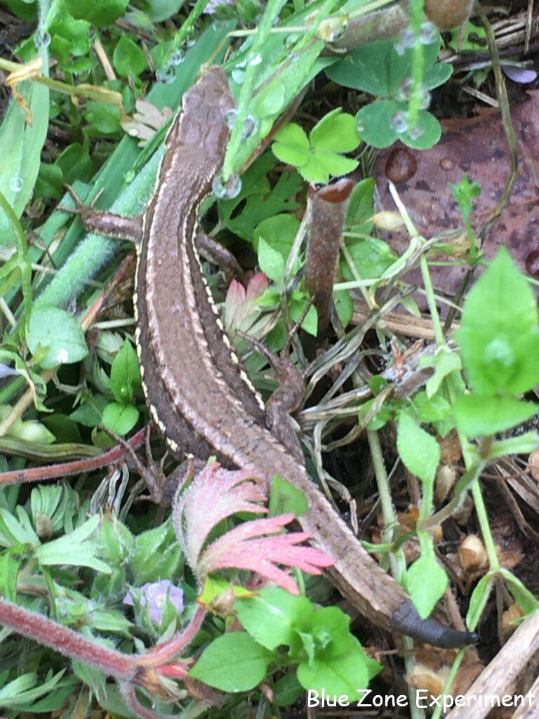 しっぽの切れたカナヘビがいました。カナヘビはよく見るのですが、いつも素早く逃げてしまい、なかなか写真が撮れません。今日は、撮影する間、じっと待っていてくれました。