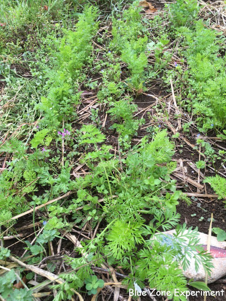 ブルーマロウは、こぼれ種から元気に育っています。背が高いので、暑い時期によい日陰を作ってくれます。ニンジンも順調です。間引きが必要ですが、今日は時間切れでした。赤ソラマメは、体は小さいですが、花が付きました。少なくとも来年用の種は採れそうです。
