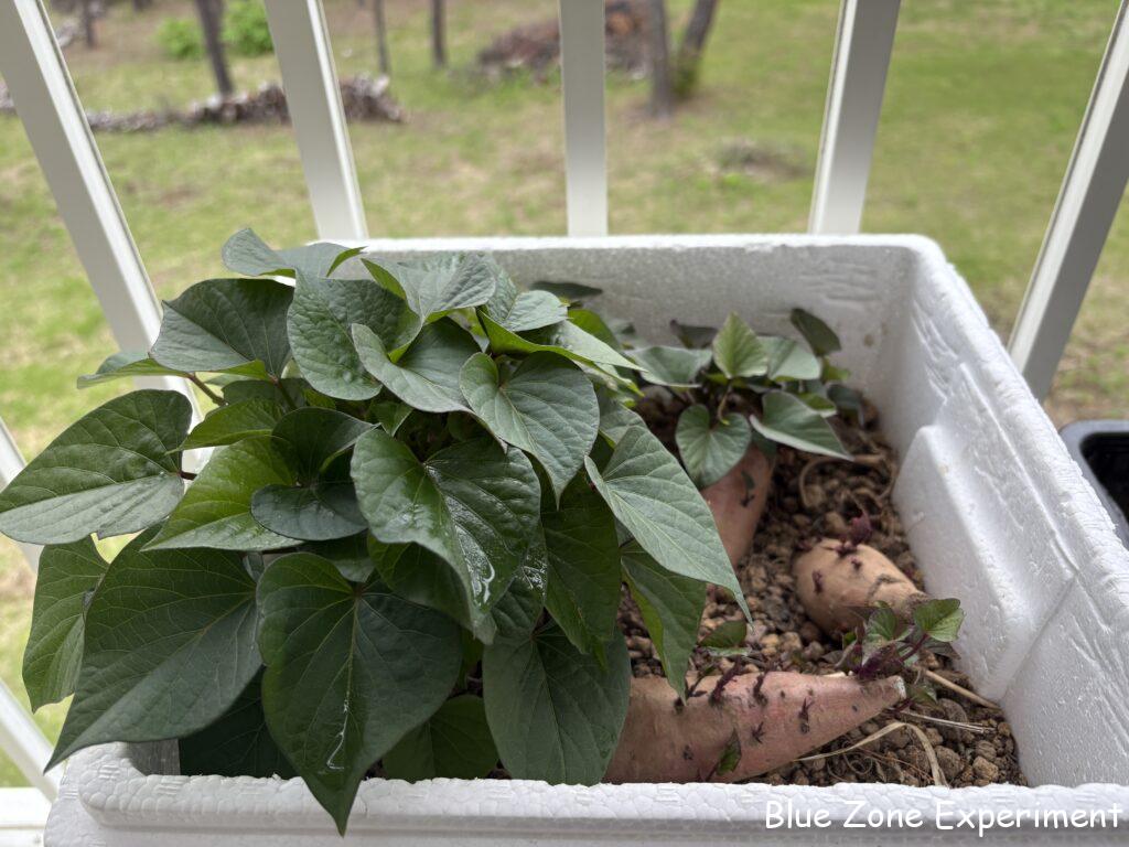 サツマイモの苗がだんだん育ってきました。今順調に育っているのは、春に近所の道の駅で買ってきた芋ばかり。畑で採れた芋は、冬の間、寒い我が家で保管していたので、どんどん腐っていきました。最後に一つだけ残ったものは、ほとんど腐っていたのですが、芽が出ていたので、腐っていない部分だけ切って、豆腐パックに水を入れて育ててみています。どうなるか楽しみです。