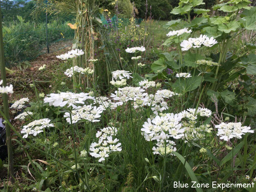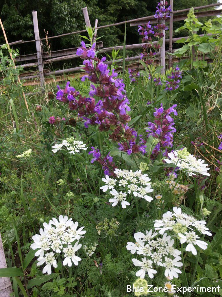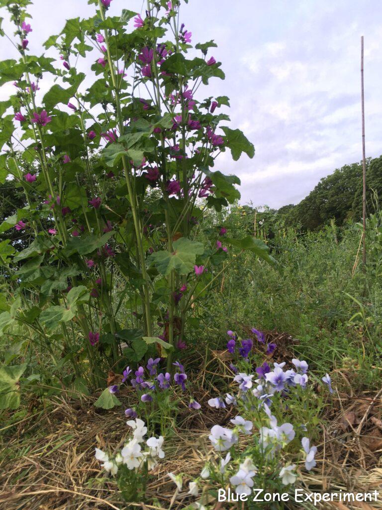 オルレアが咲き誇っています。セージもかなり背が高くなって勢いが感じられます。ブルーマロウは、去年同様、どんどん花をつけて、虫を呼んでくれています。株元に植えたビオラも根付いたようで、元気そうでした。畑に花が咲いていると心が和みます。