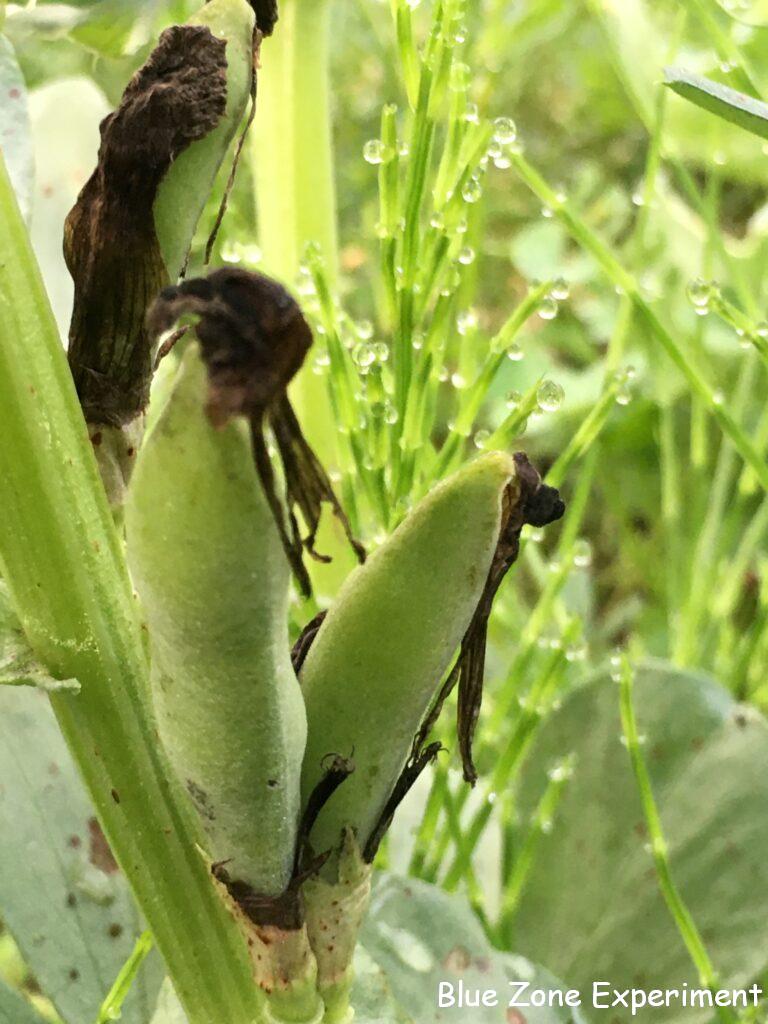 3 月 6 日に種をまいて、なかなか発芽せず、一時はあきらめていた赤ソラマメは、小さいながら花を咲かせて、小さな莢もつけています。来年の種が採れればいいと思っていましたが、一回くらいは赤ソラマメご飯が食べられるかもしれません。